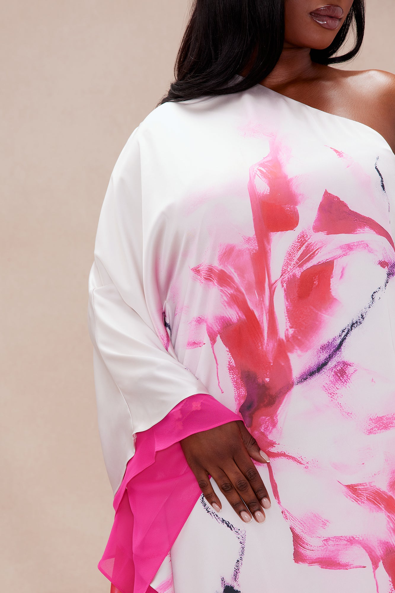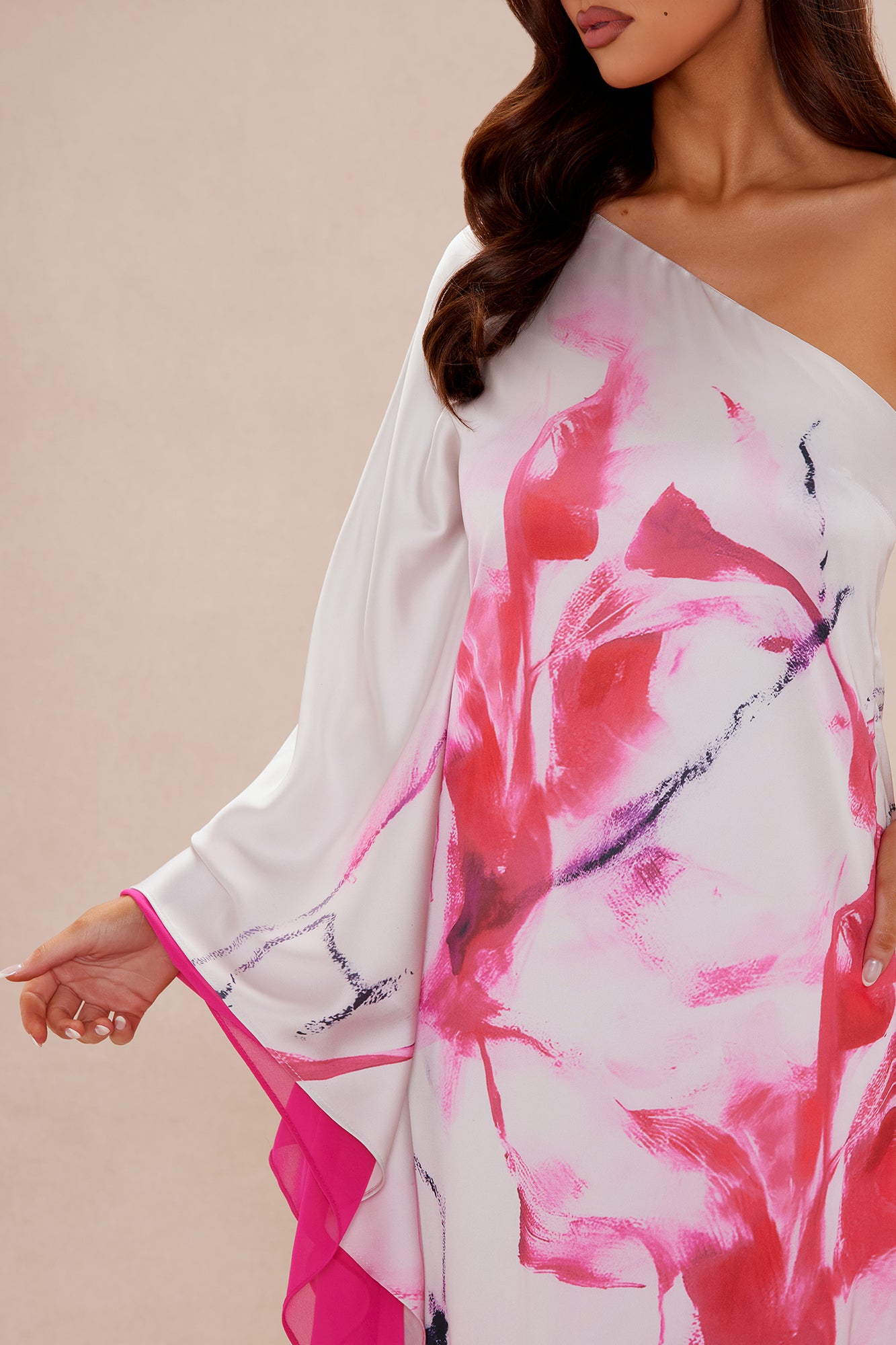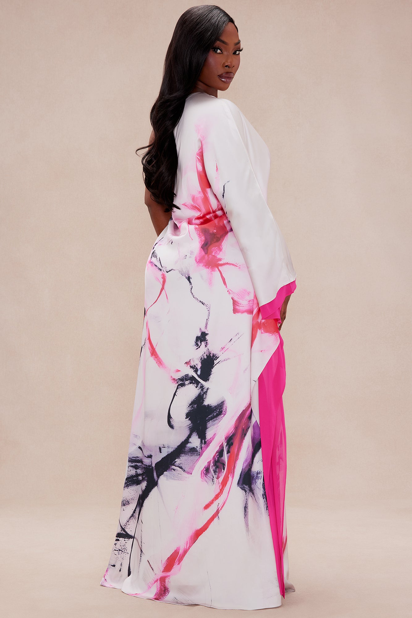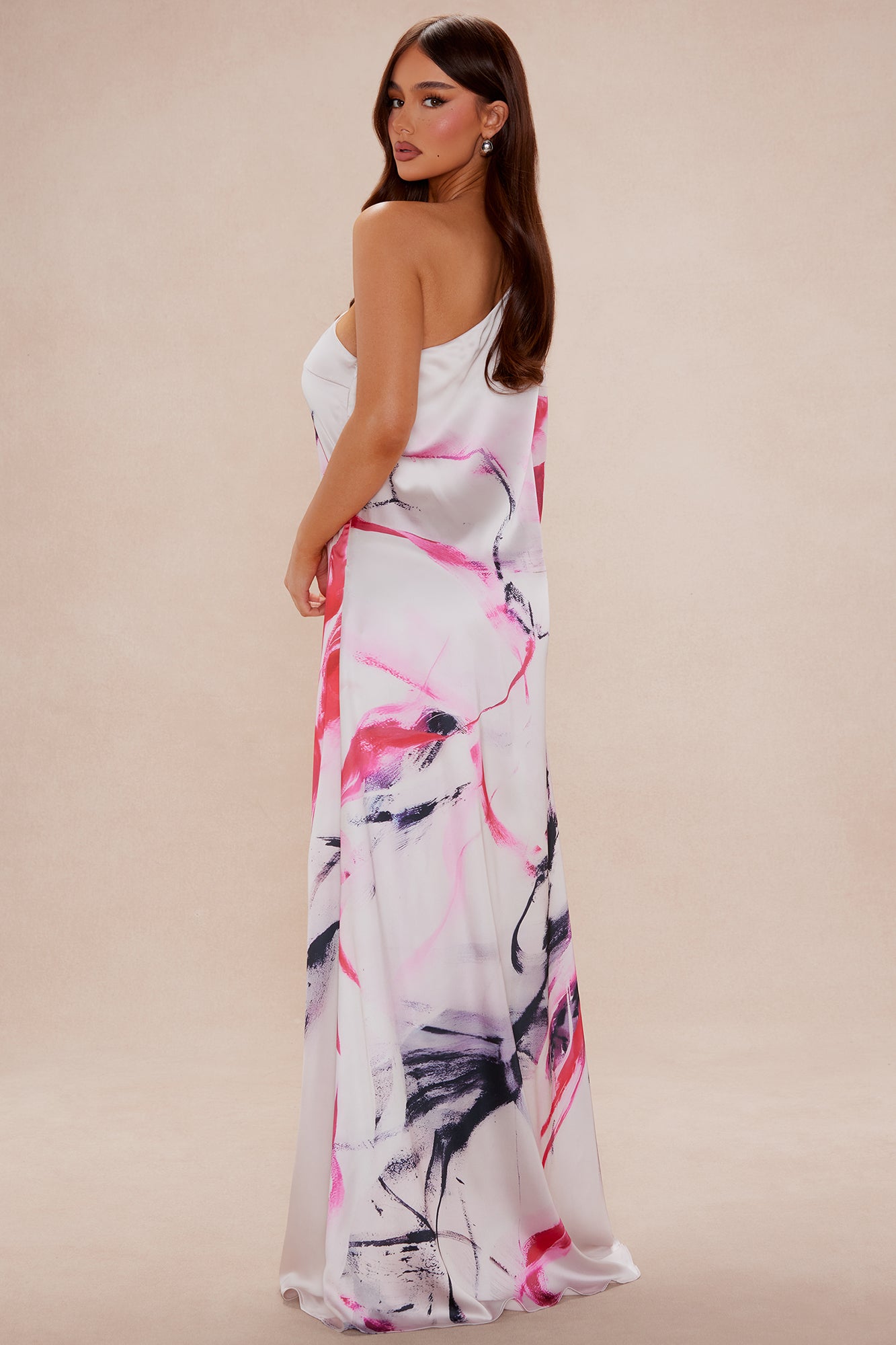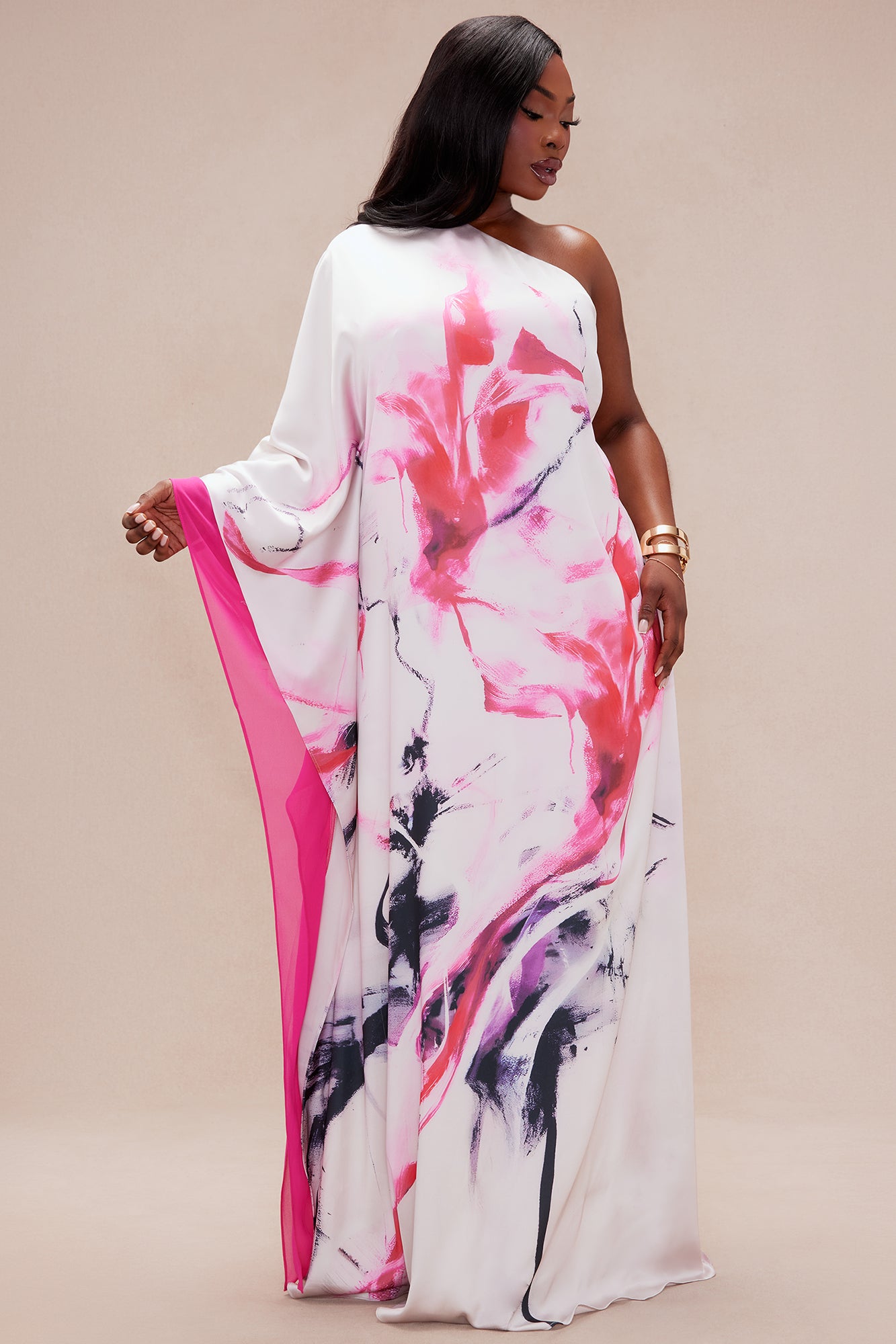 Available In Pink/combo. Satin Maxi Dress One Shoulder Dolman Sleeve Abstract Print Back Zipper Closure Non Stretch Disclaimer: Print Placement May Vary Shell1: 97% Polyester 3% Spandex Shell2: 100% Polyester Lining: 95% Polyester 5% Spandex Imported |