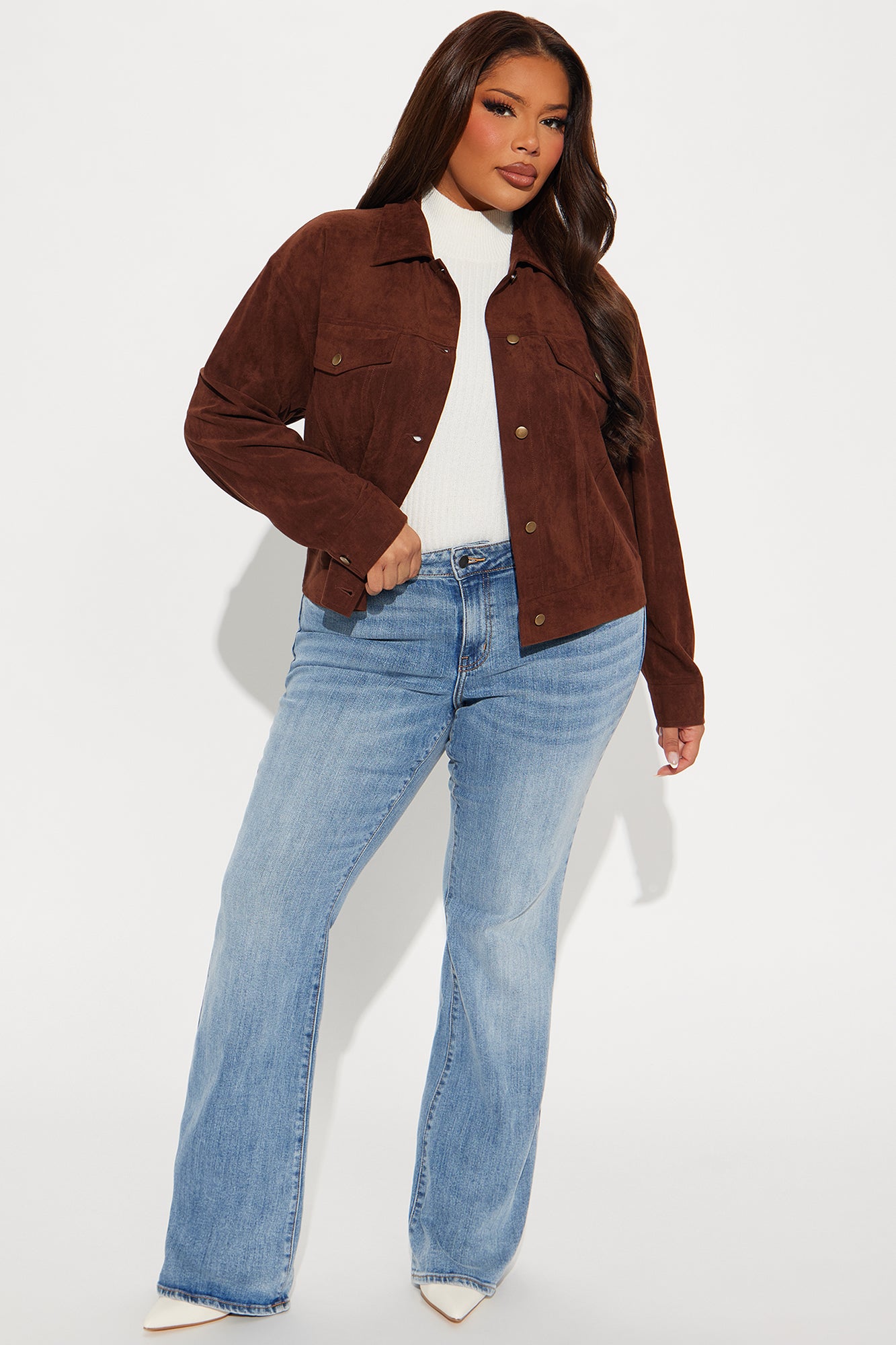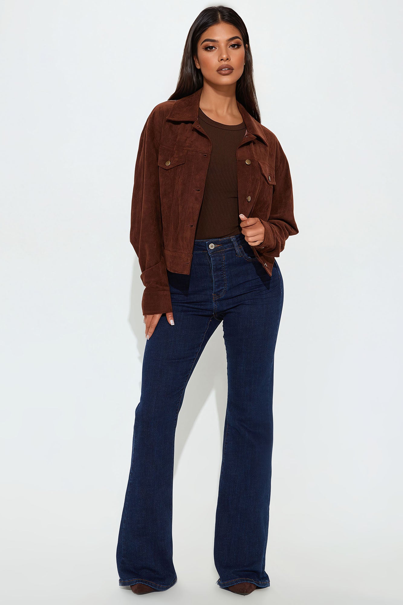Available In Olive, Brown, And Wine. Jacket Collar Long Sleeve Faux Suede Pockets Button Closure Cropped Fully Lined Self: 90% Polyester 10% Spandex Lining: 97% Polyester 3% Spandex Imported |