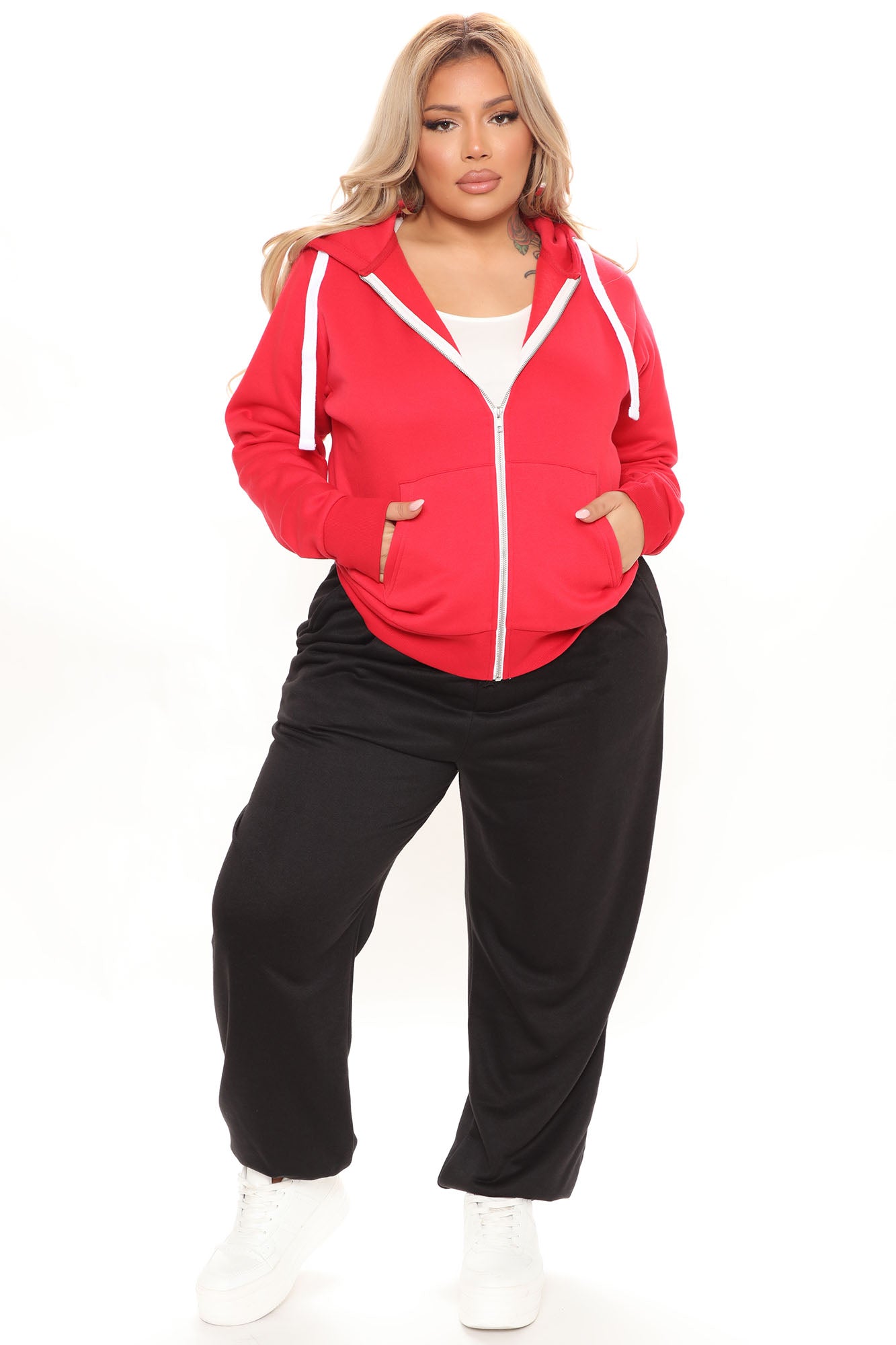 Available In Pink And White. Fleece Solid Full Zip Jacket Hoodie Pockets Contrast White Drawstring Pair With "Relaxed Vibe Jogger" 60% Cotton 40% Polyester Imported |