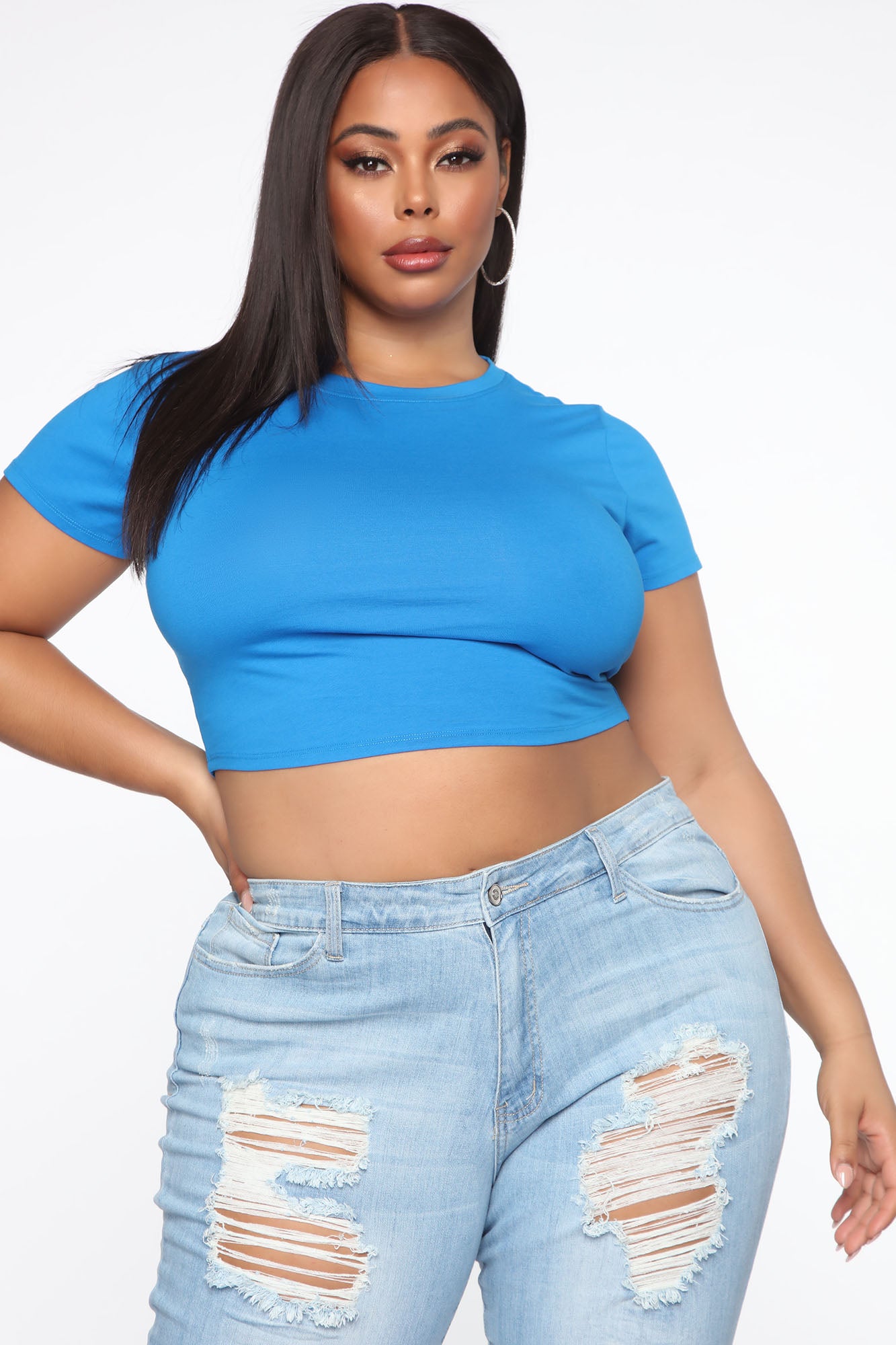 | Available In Black, Sexy Ruby, Dark Olive, Heather Grey, Magenta, Mustard, Olive, Dark Red, White, Wine, Pink, Citron, Navy, Sherbet And Cobalt Crew Neck Short Sleeve Crop Top Self: 95% Cotton 5% Spandex Imported |