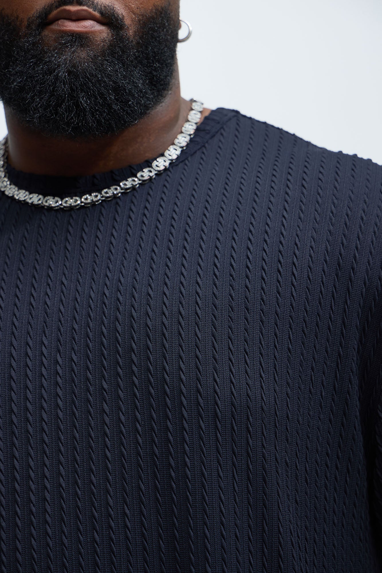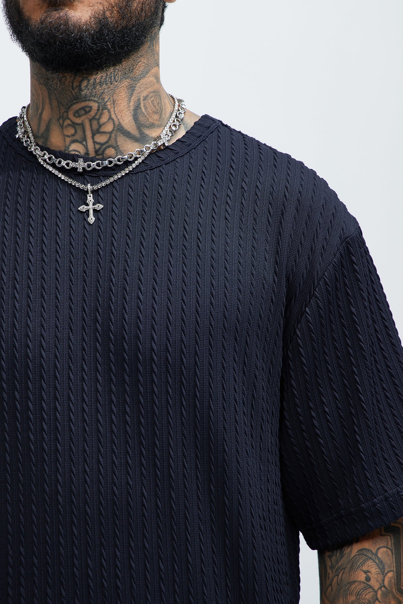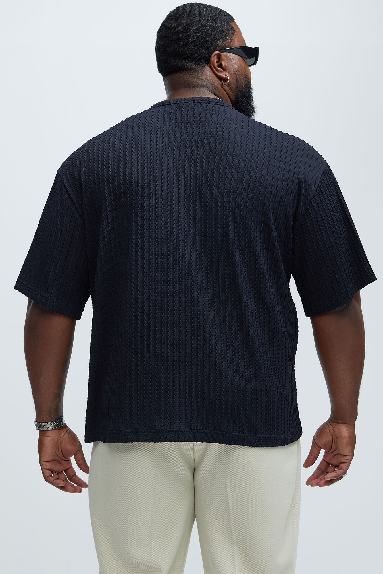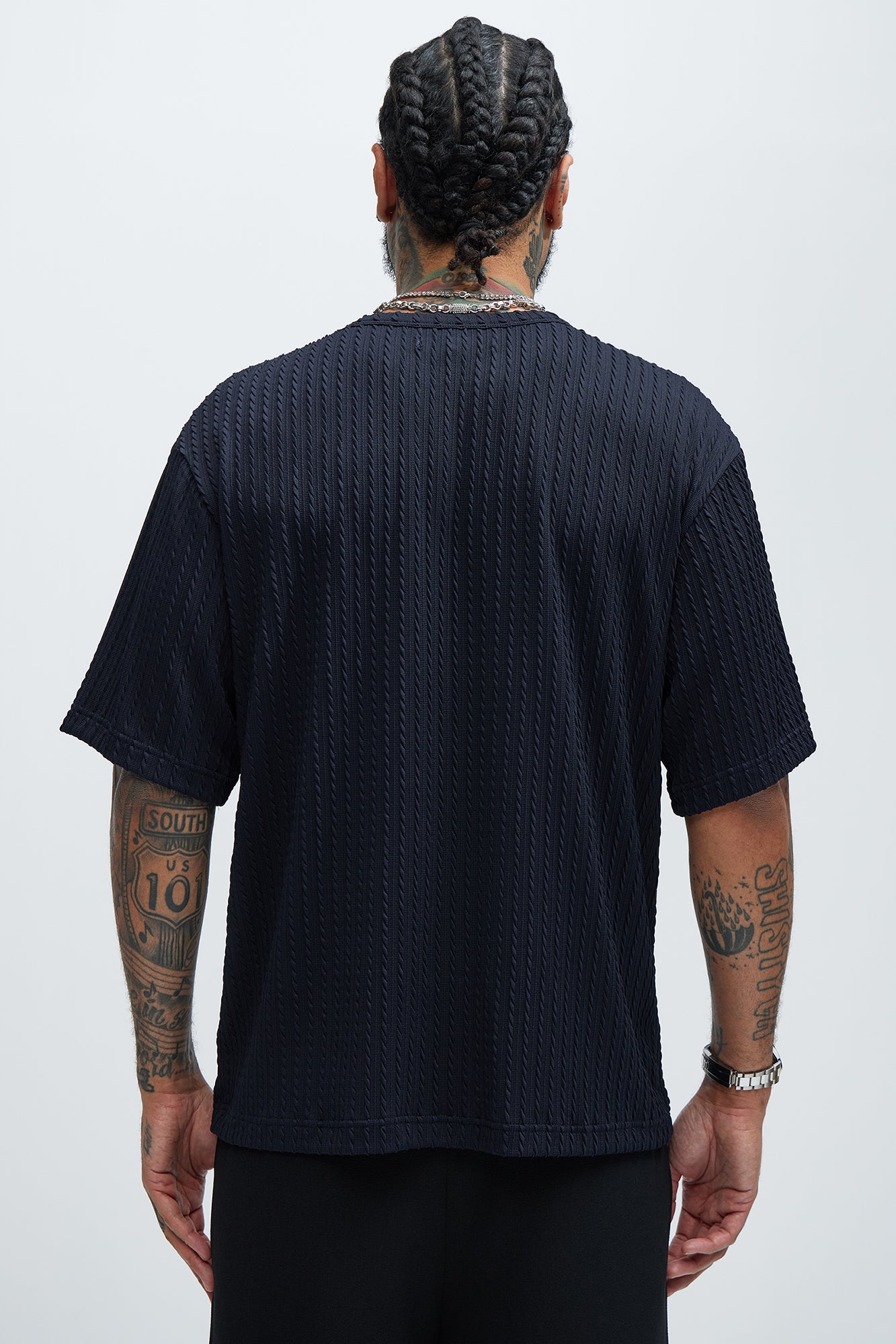 Available In Navy, Cream, Olive, Light Blue Crew Neck Short Sleeve Textured Detail 95% Polyester, 5% Spandex Imported |