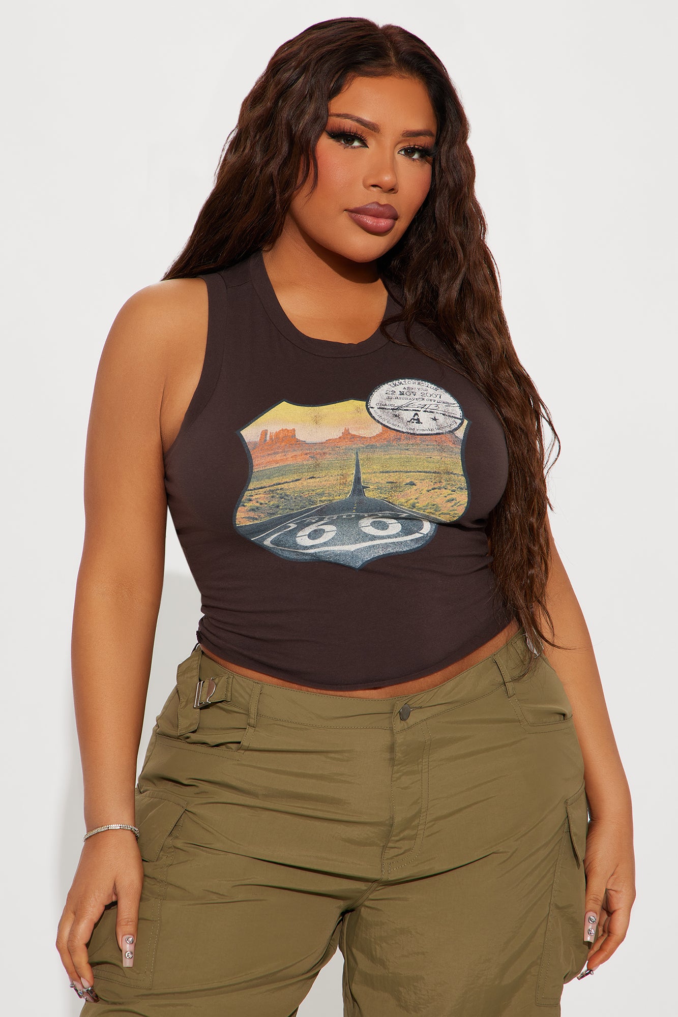 Available In Brown. Crew Neck Sleeveless Front Screen Embroidery Detail Stretch Disclaimer: Due To The Printing Process A Difference In Saturation May Occur. Each Garment Is Unique. 95% Cotton 5% Spandex Imported |