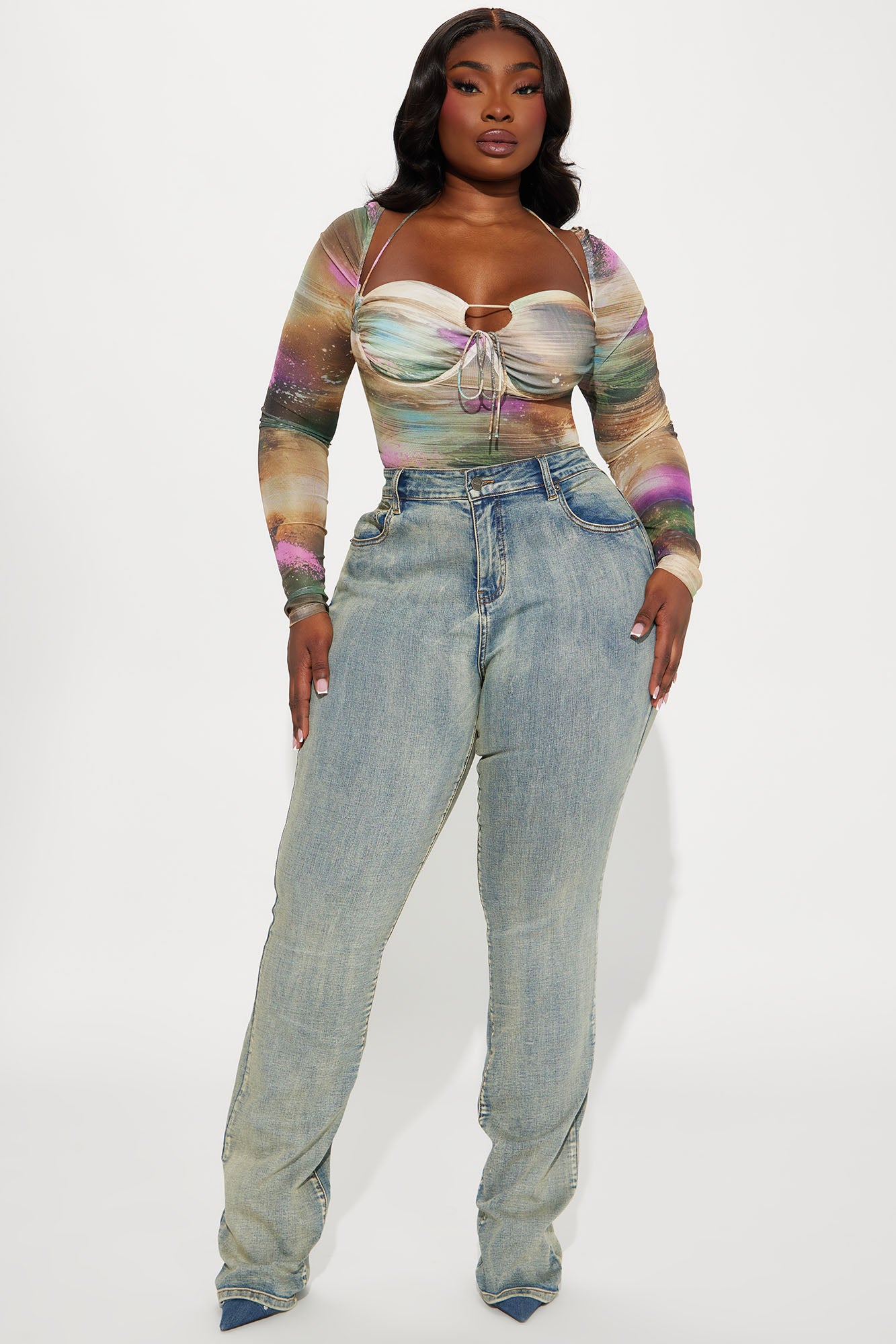 | Available In Vintage Wash. Straight Leg Jean Stacked Leg Medium Stretch 5 Pocket 35.5" Inseam 11" High Rise Disclaimer: Due To The Specialized Wash Process, Each Garment Is Unique. 98% Cotton 2% Spandex Imported |