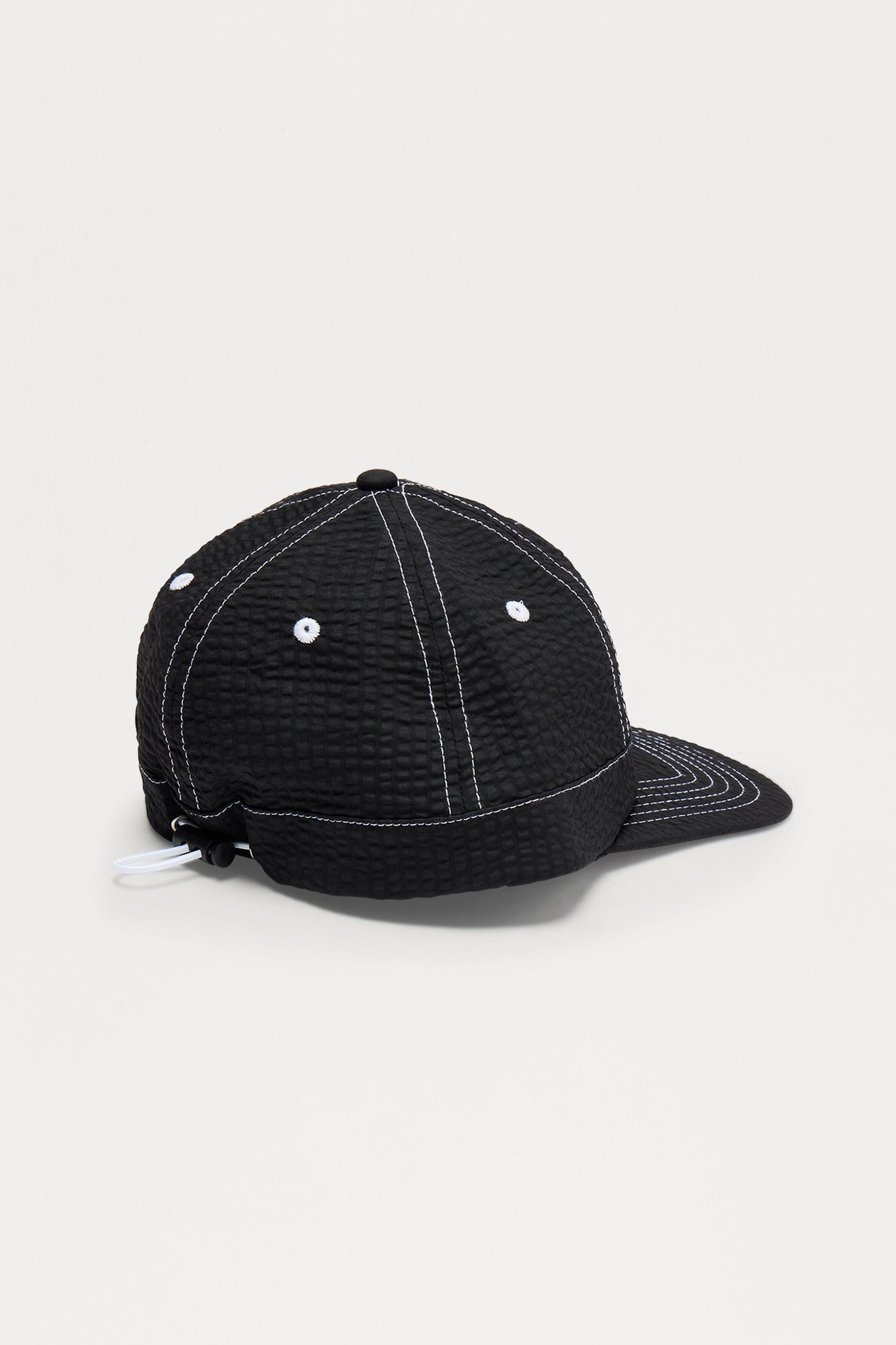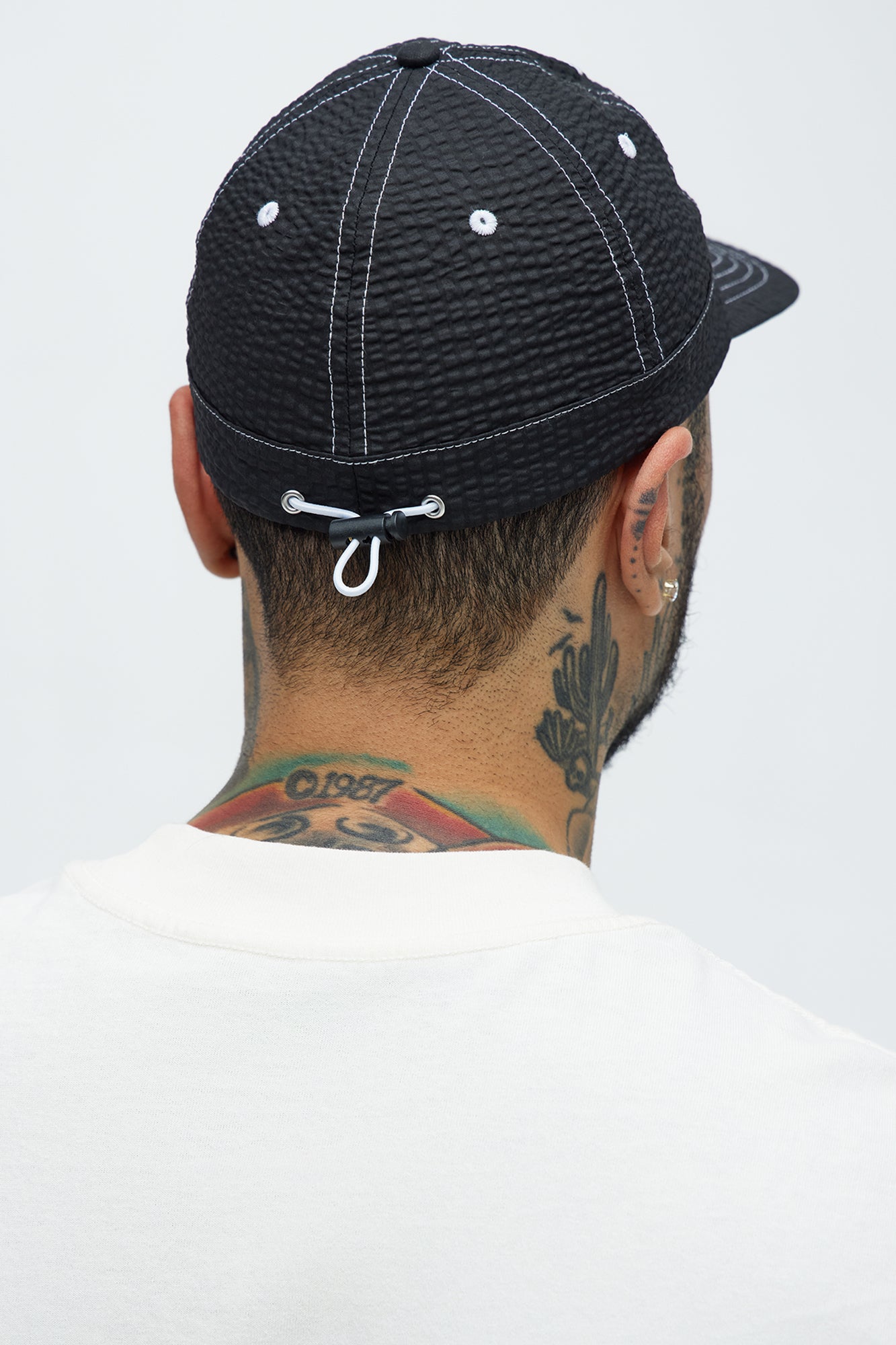 Available In Black. 6 Panel Silhouette Brim With Slight Curve Seersucker Fabrication Adjustable Fit Toggle Closure 100% Polyester Disclaimer: Spot Clean When Needed Imported |