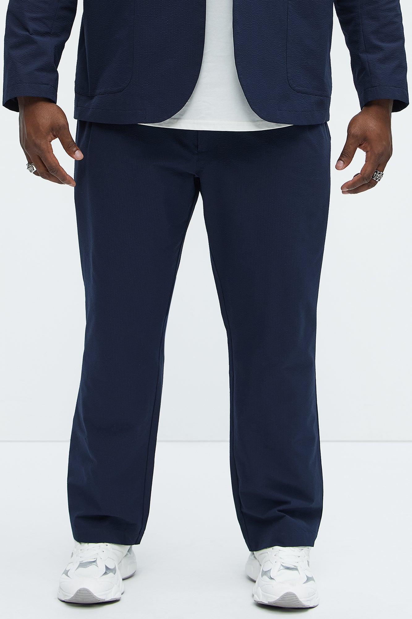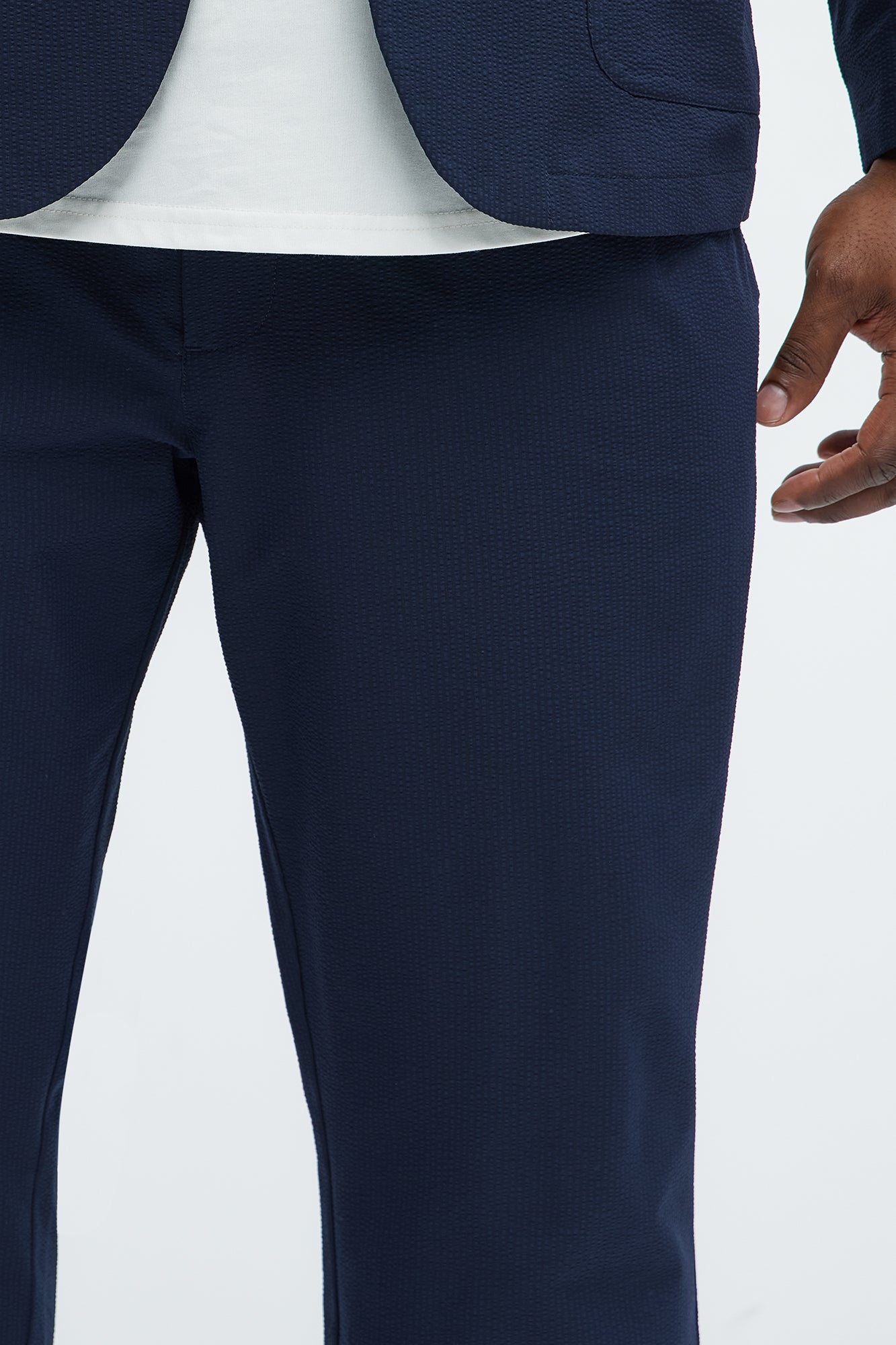 Available In Navy. Zip Fly Button Closure Side Pockets Pleated Detail Pair With "Seersucker Casual Blazer" Shell: 100% Polyester Lining: 100% Polyester Imported |