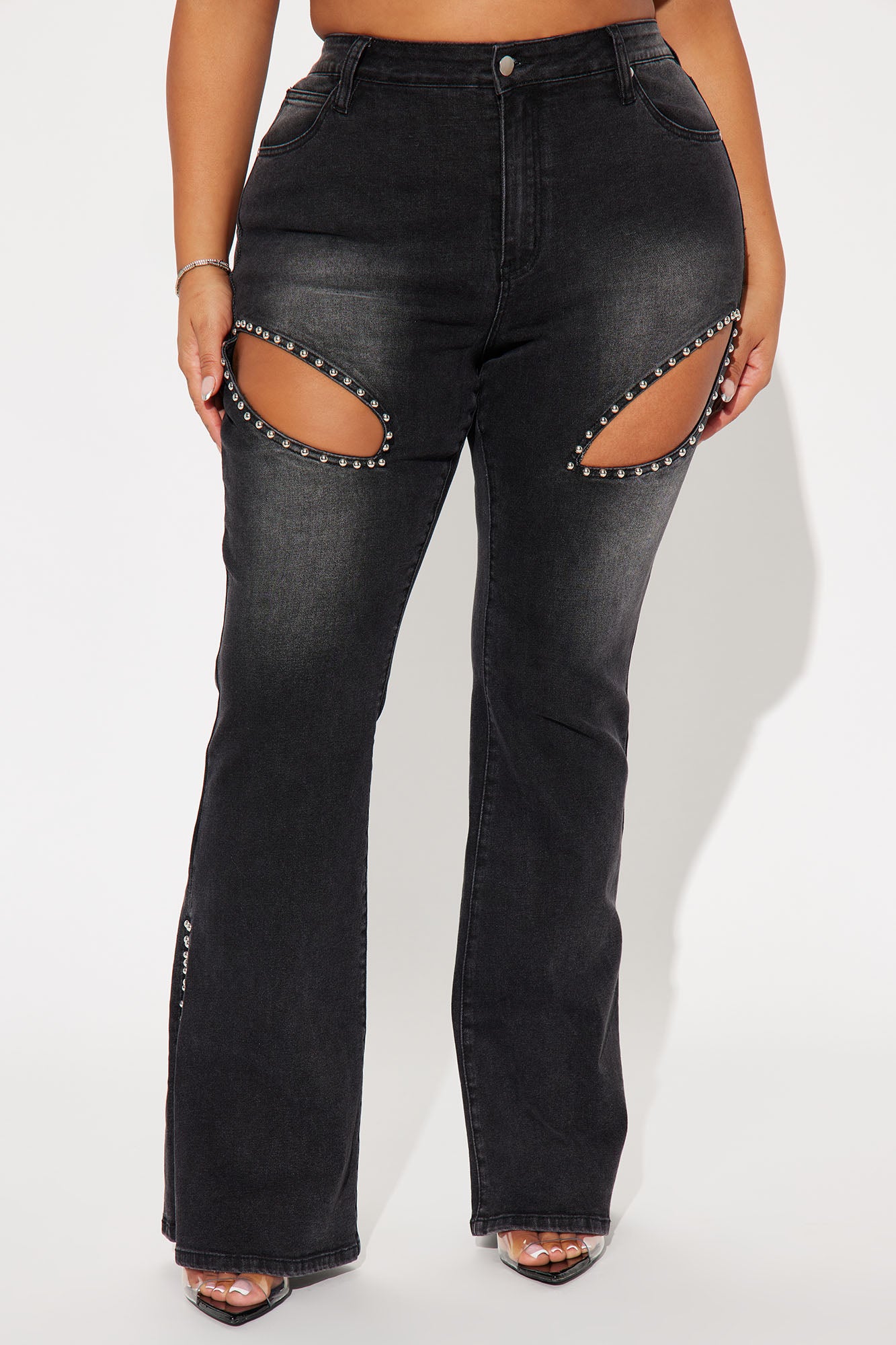 Available In Black Wash. Pair With Self Assured Stretch Embellished Denim Jacket 5 Pockets Split Hem Cut Out Detail Embellished 11" High Rise 34" Inseam Medium Stretch Disclaimer: Due To The Specialized Wash Process, Each Garment Is Unique. 69% Cotton 29% Polyester 2% Spandex Imported |