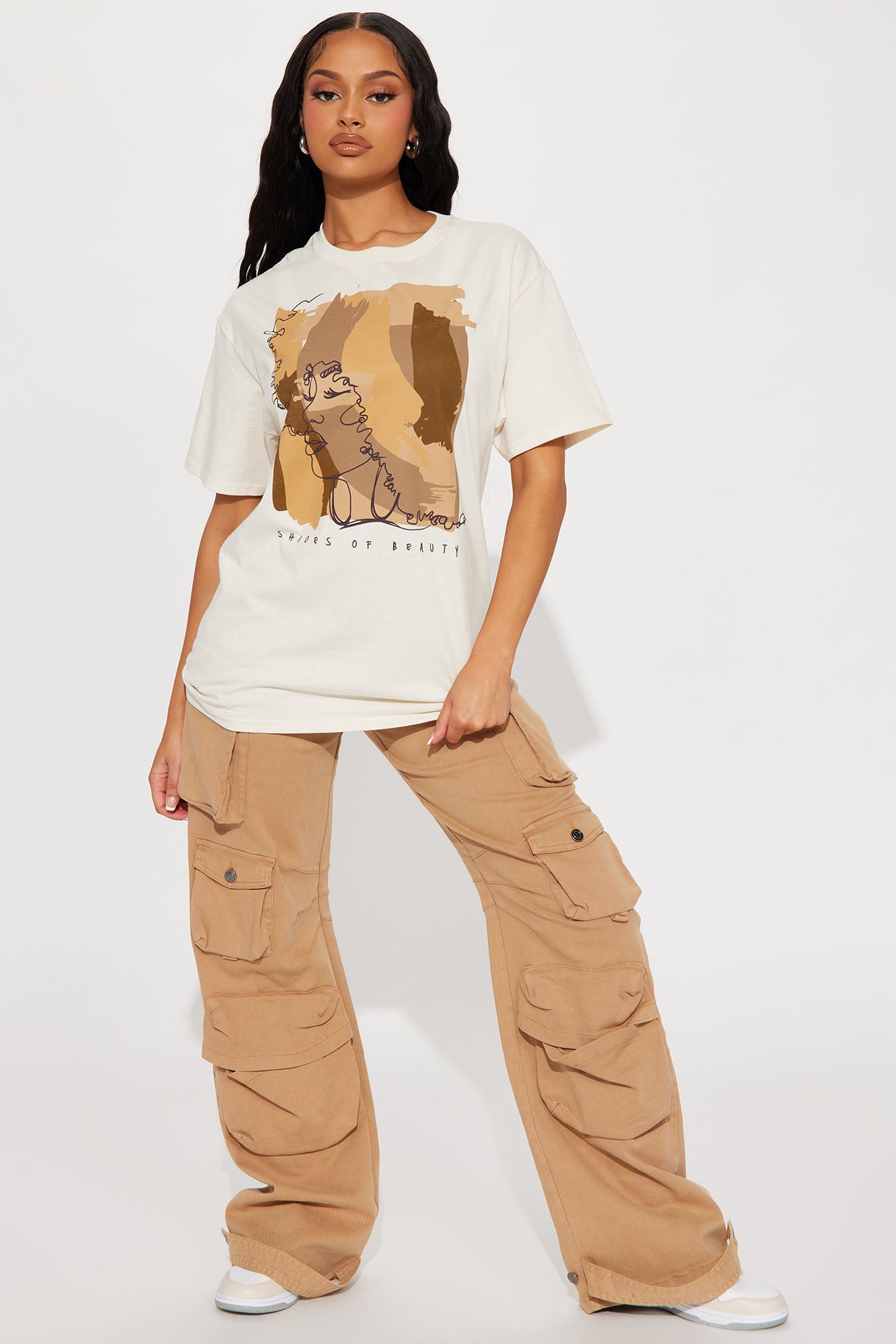 Available In Khaki. T-Shirt Crew Neck Short Sleeve "Shades Of Beauty" Verbiage Front Screen Disclaimer: Due To The Printing Process A Difference In Saturation May Occur. Each Garment Is Unique. Print Placement Will Vary. 100% Cotton Imported |