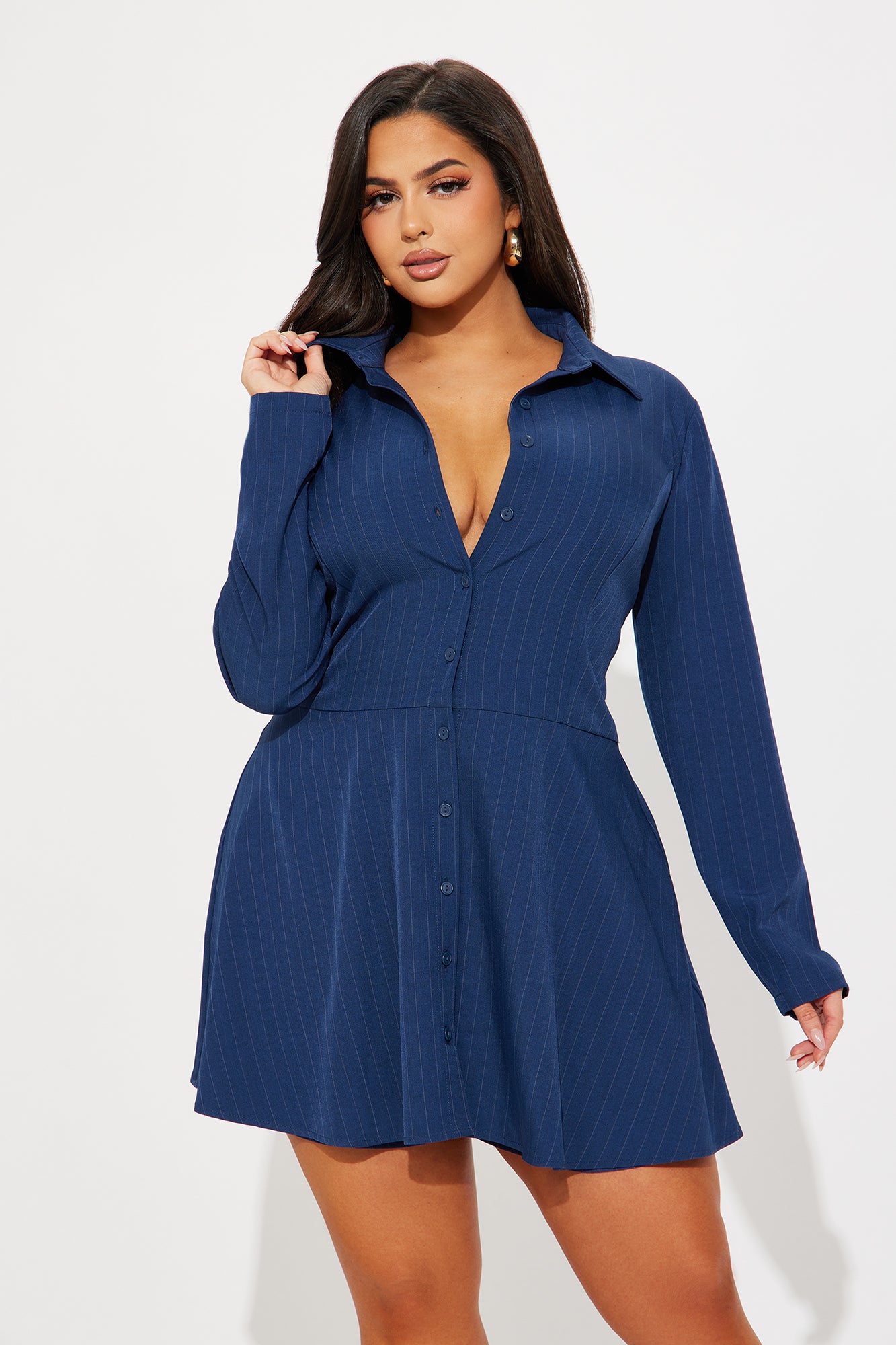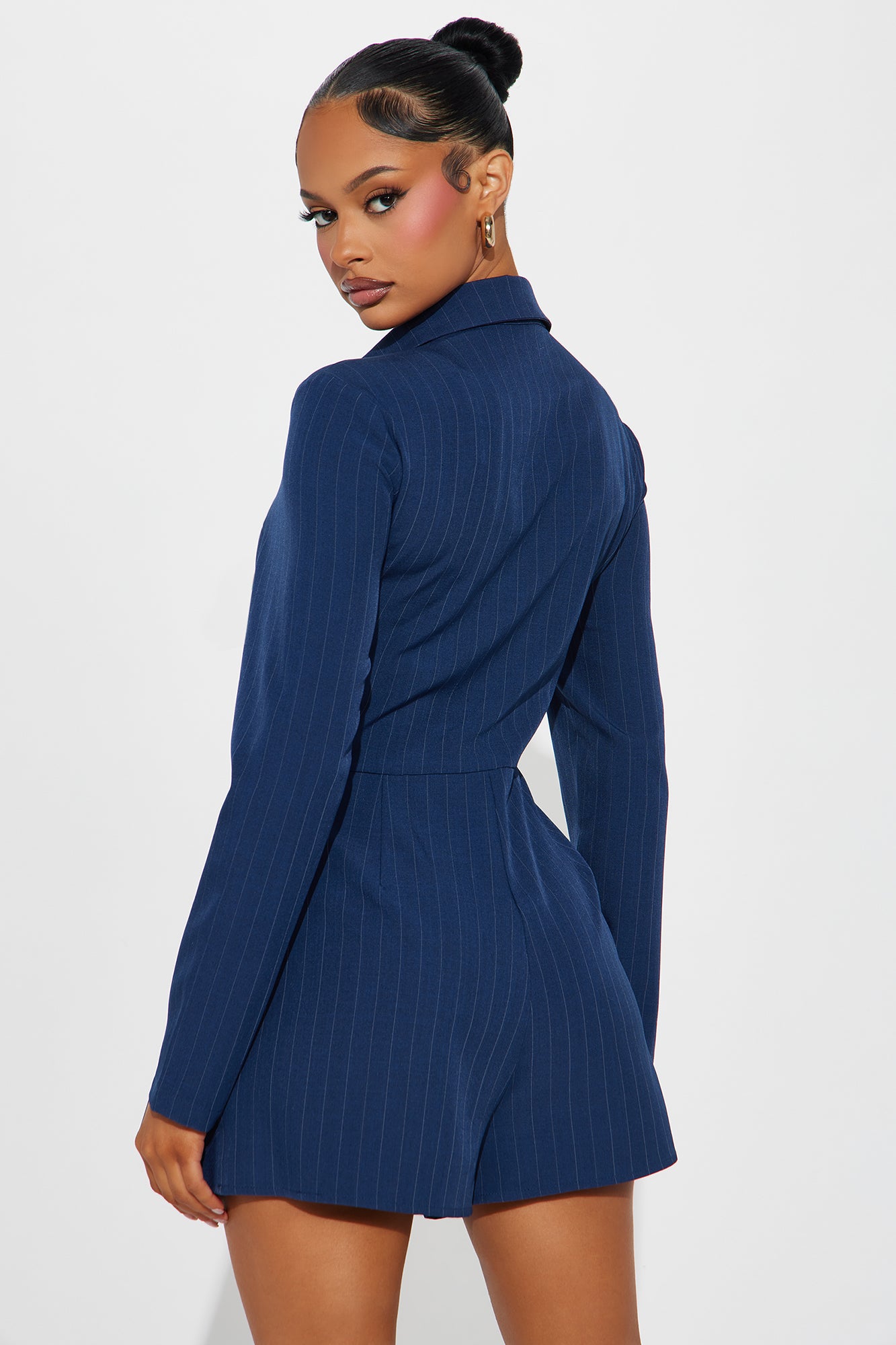 Available In Navy And Black. Pin Stripe Romper Collar Button Down Pin Stripe Skort Non Stretch 95% Polyester 4% Spandex 1% Rayon Imported |