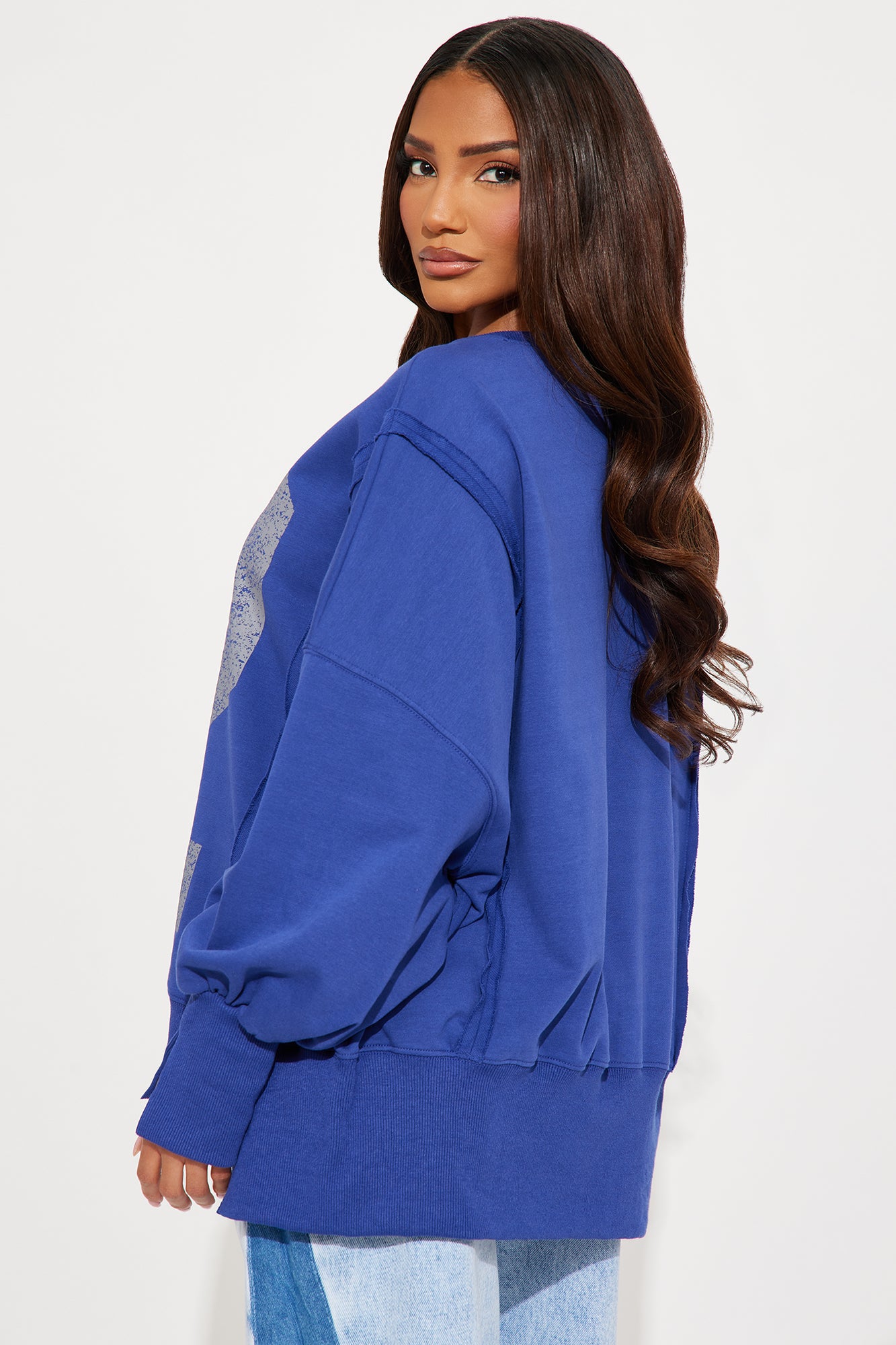 Available In Hunter Green And Royal. Crew Neck Sweatshirt Long Sleeve Seam Detail Front Screen Self: 85% Cotton 15% Polyester Contrast: 95% Polyester 5% Spandex Imported |
