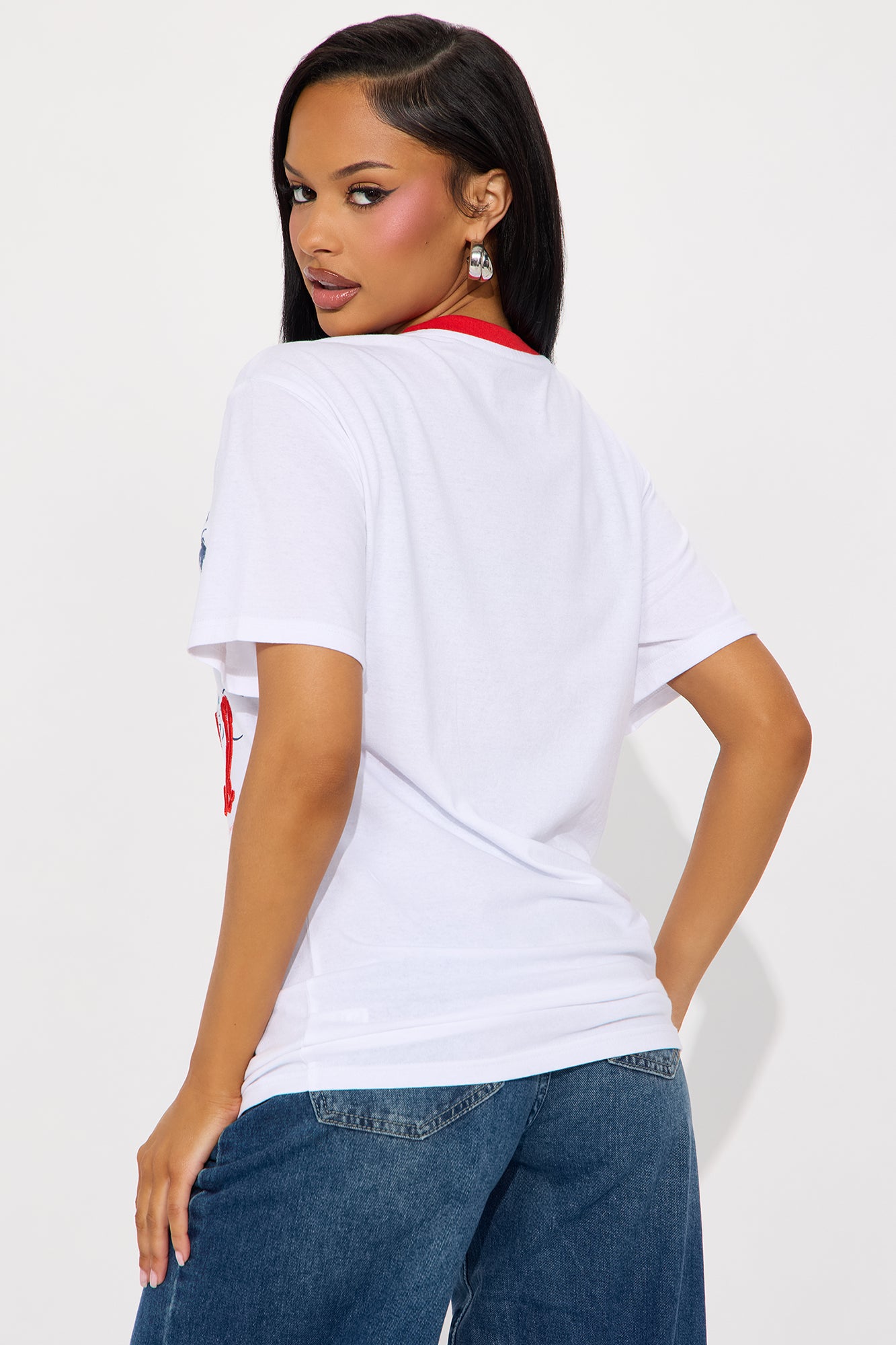 Available In White. Tshirt Crew Neck Short Sleeve Front Screen Embroidery Detail Stretch Disclaimer: Due To The Printing Process A Difference In Saturation May Occur. Each Garment Is Unique.? 60% Cotton 40% Polyester Imported |