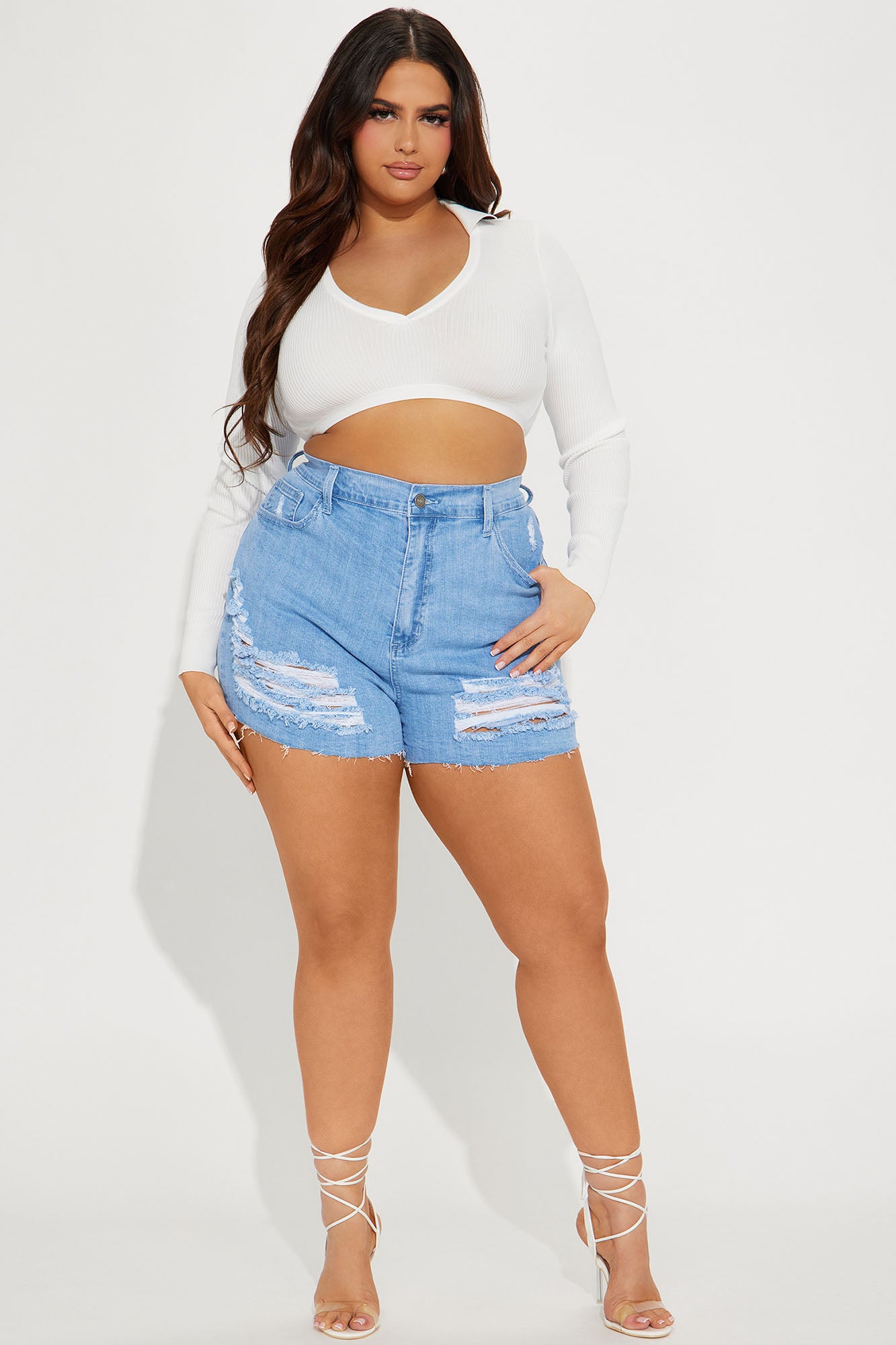 Available in Black, White, And Light Wash High Rise Distressed 5 Pocket Detail Raw Hem Detail Disclaimer: Due To The Specialized Wash & Distressing Process, Each Garment Is Unique 98% Cotton 2% Spandex Imported |