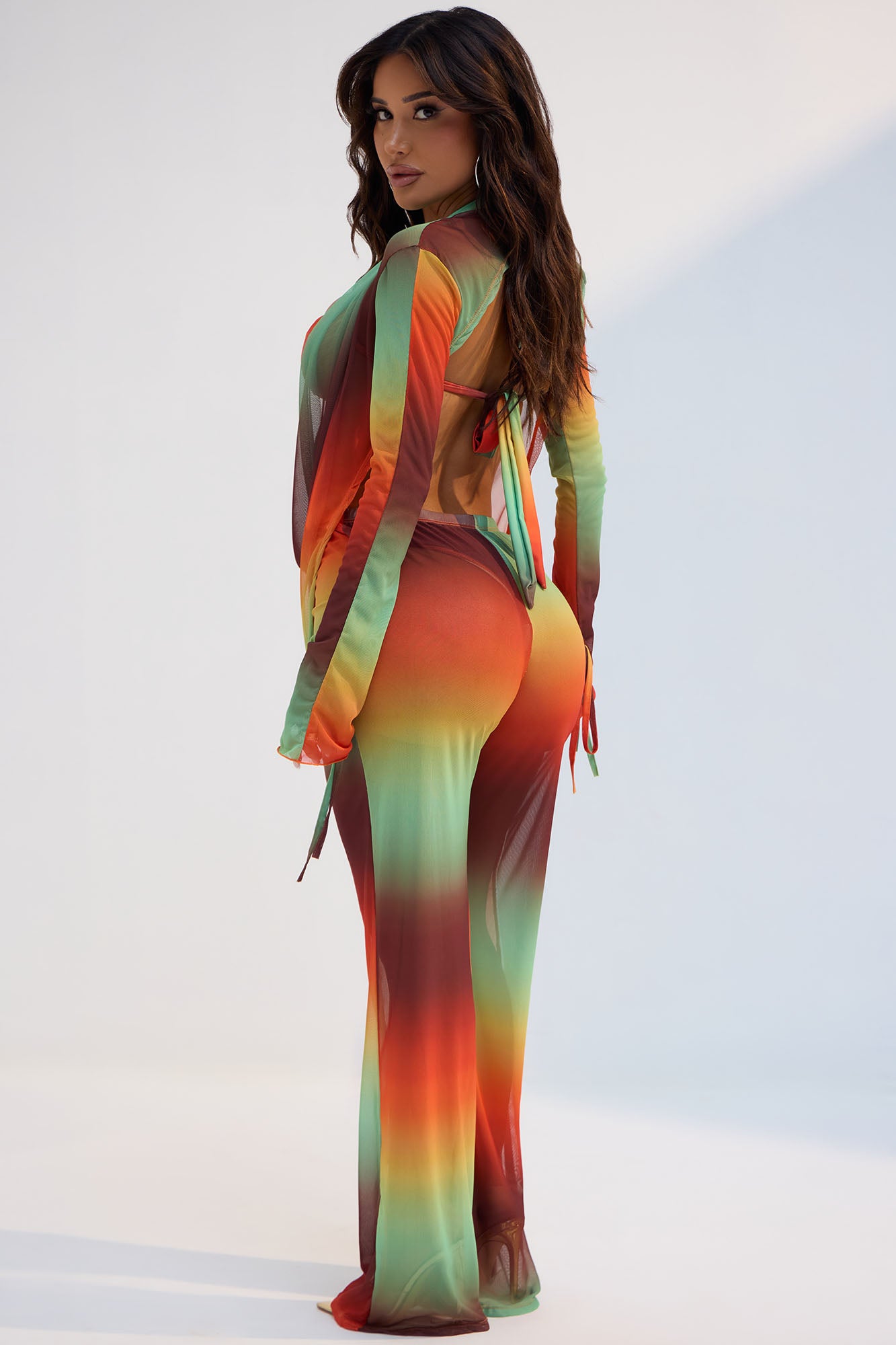 Summer Muse Cowl Neck Mesh Cover Up Pants Set
