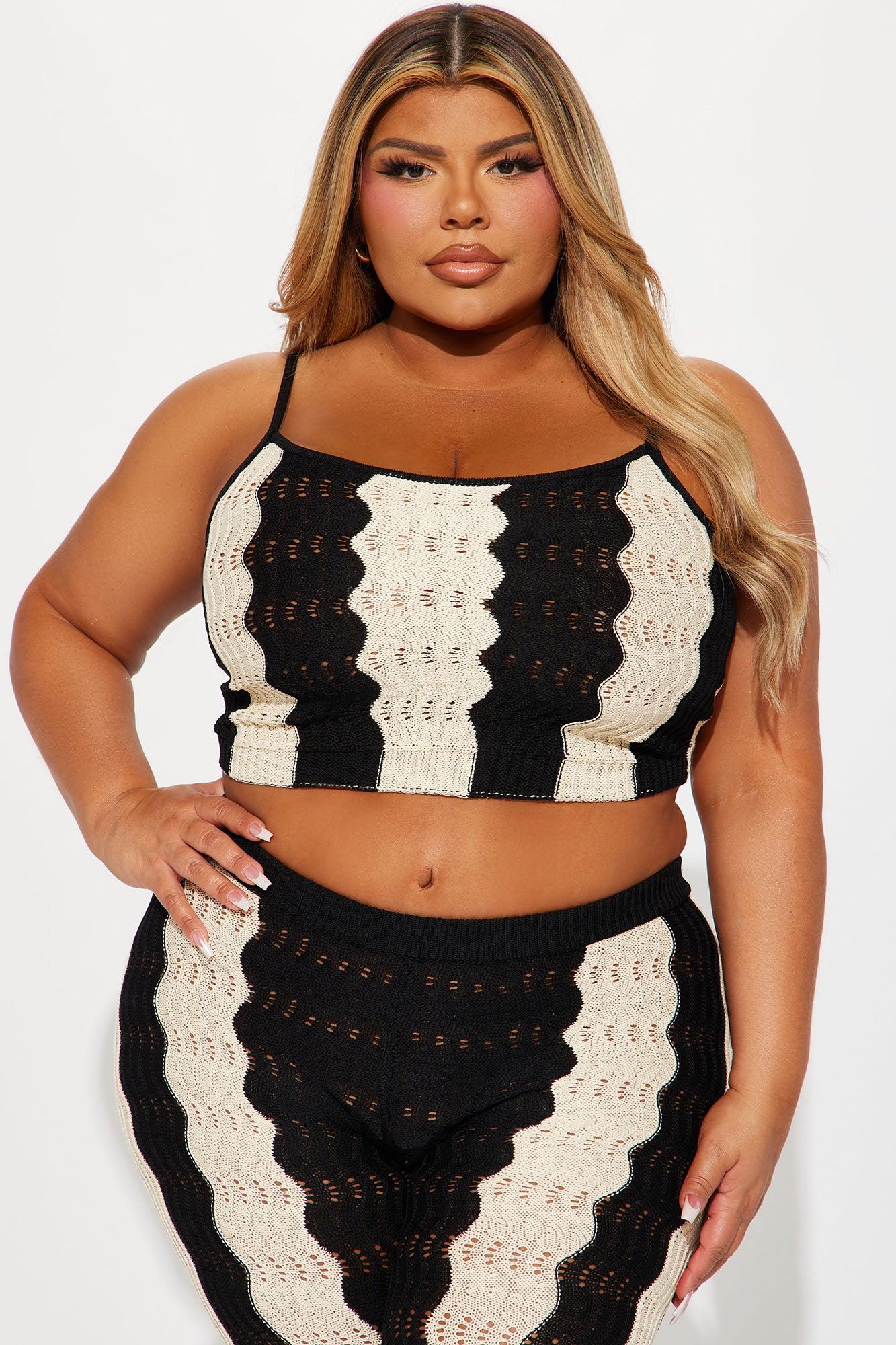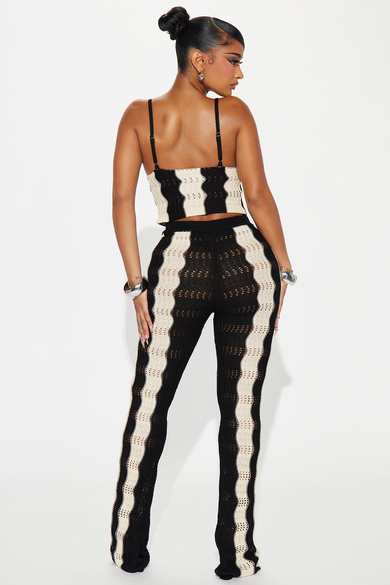 Available In Black/combo. Sweater Pant Set Crop Top Scoop Neck Adjustable Spaghetti Straps Straight Leg Pant Elastic Waistband Stretch 34" Inseam Disclaimer: Pattern Placement May Vary. 100% Viscose Imported  |