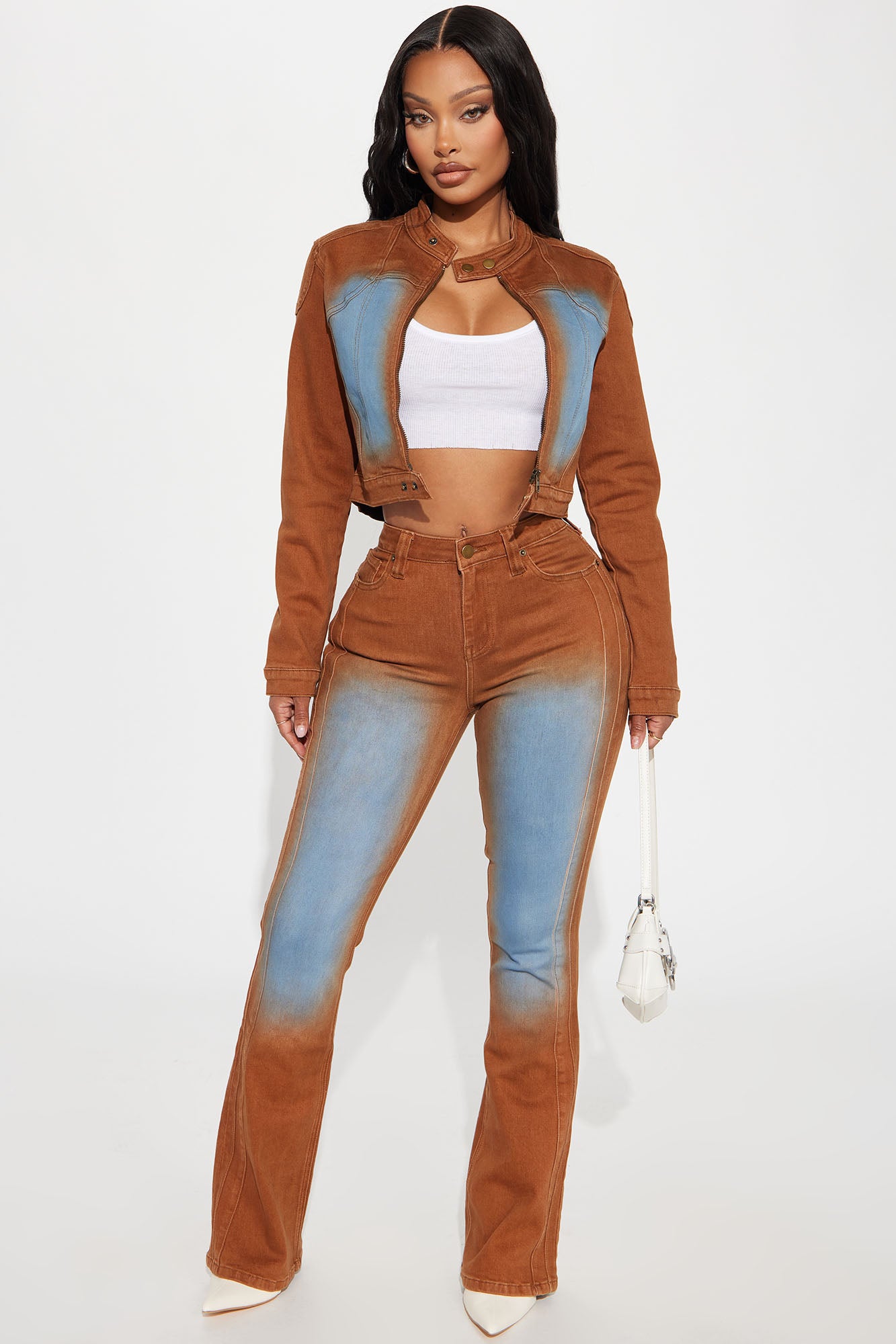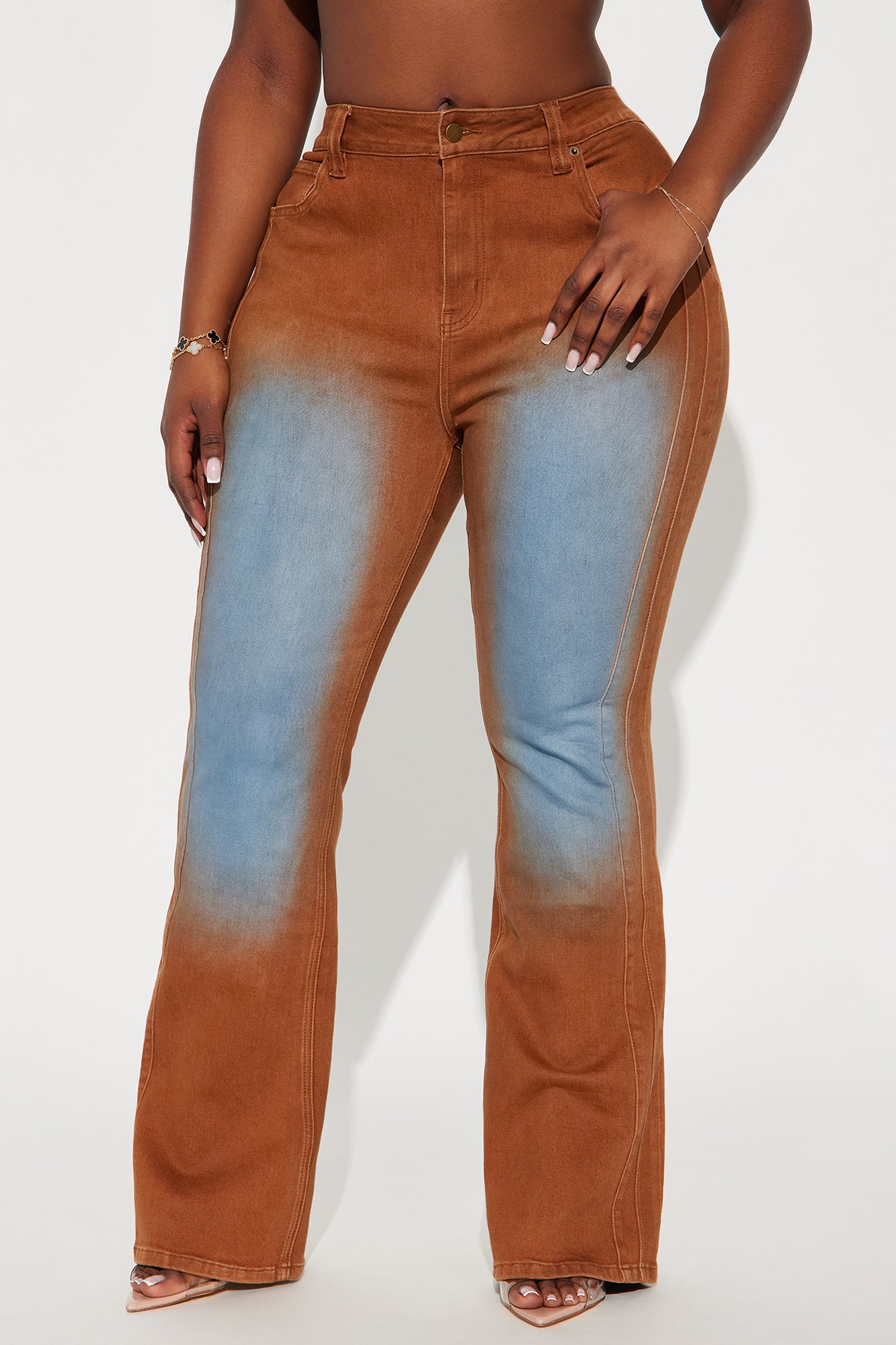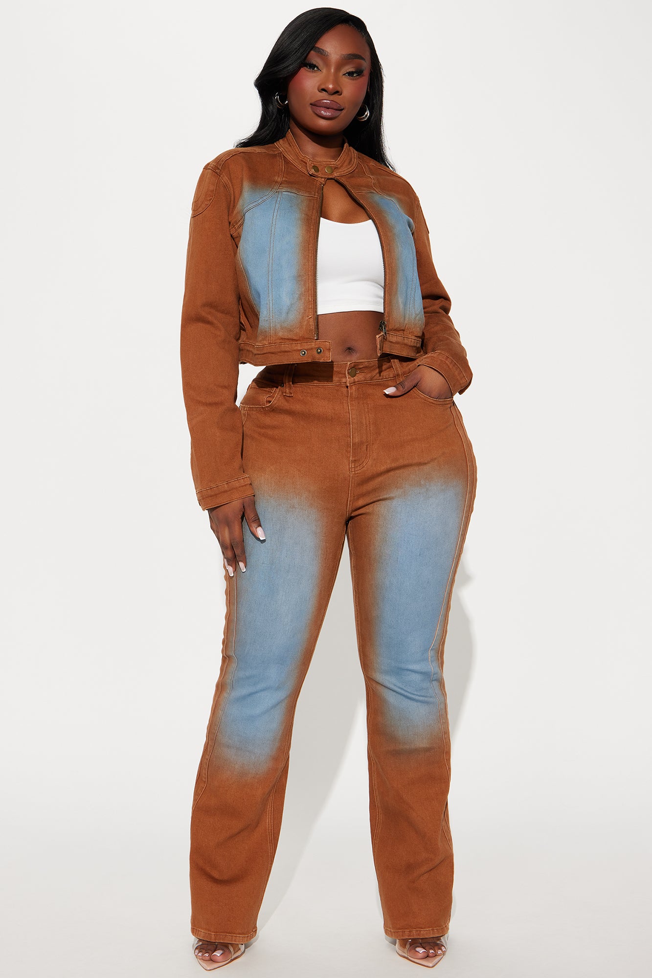 Available In Brown. Pair With Switch Lanes Tinted Moto Denim Jacket Flare Jean 5 Pocket Tinted Seam Detail 10.5" High Rise 33" Inseam Medium Stretch Disclaimer: Due To The Specialized Wash Process, Each Garment Is Unique. 70% Cotton 28% Polyester 2% Spandex Imported |