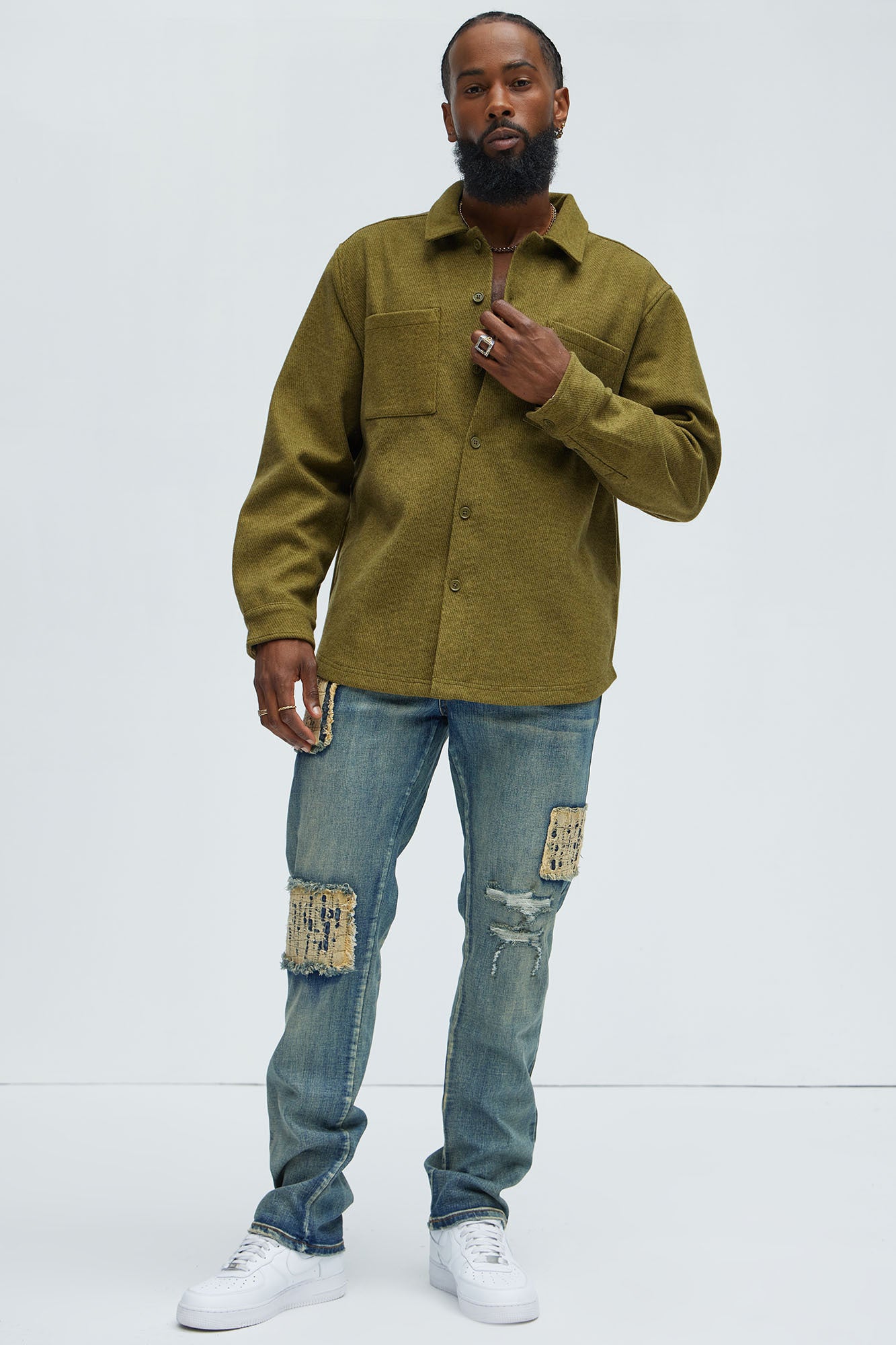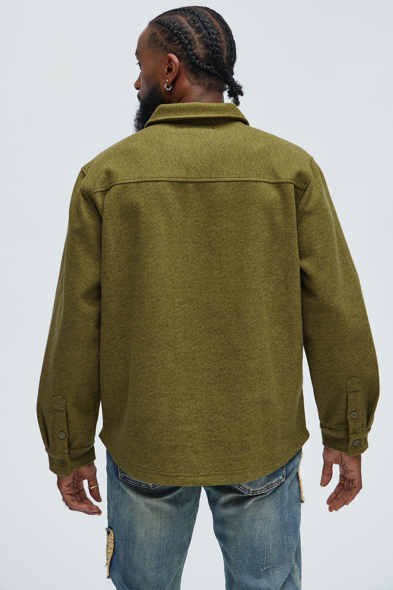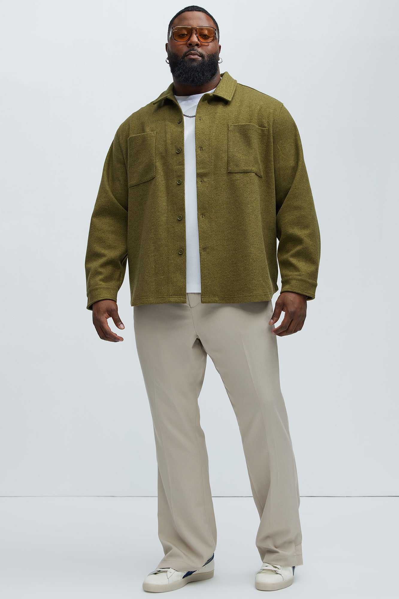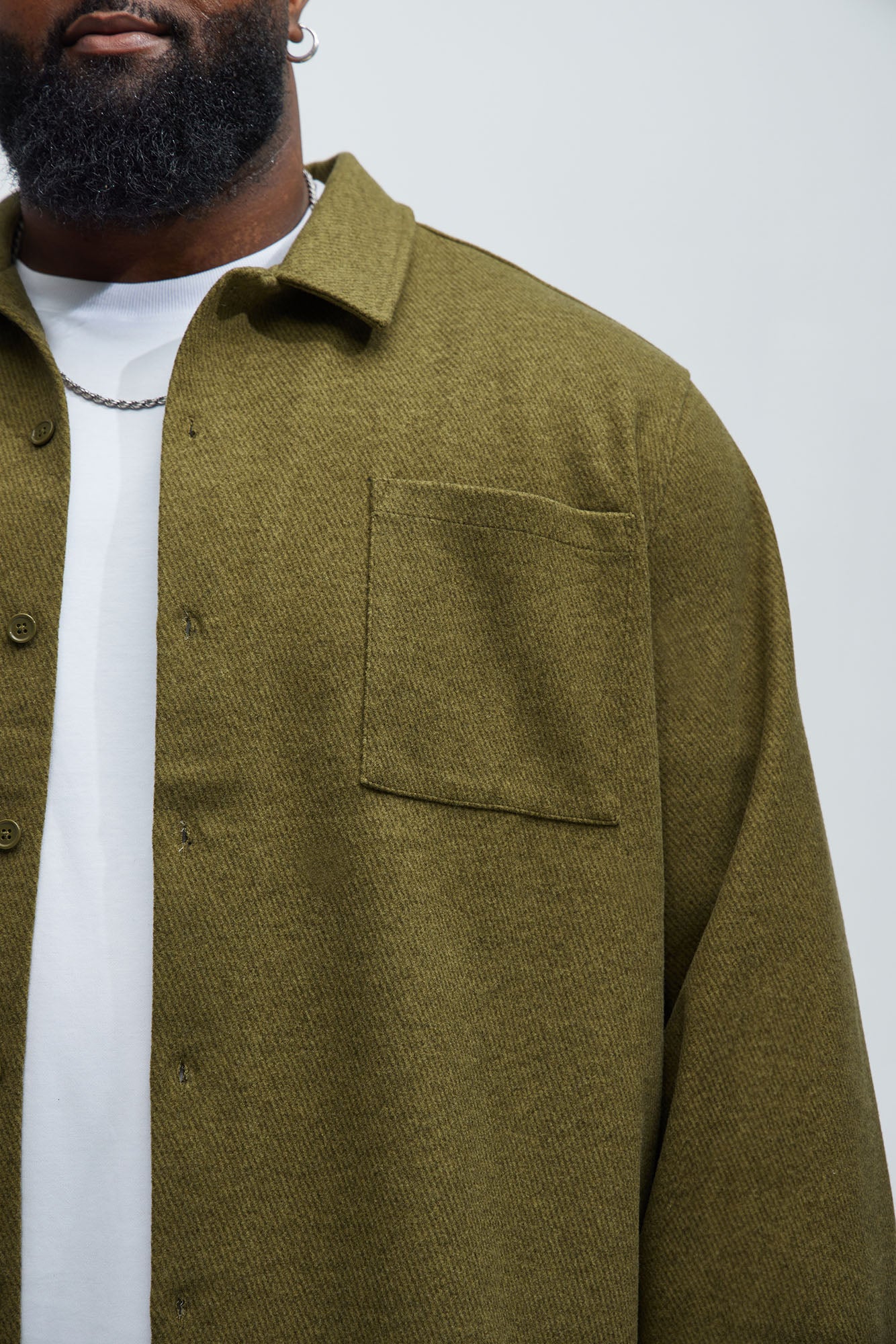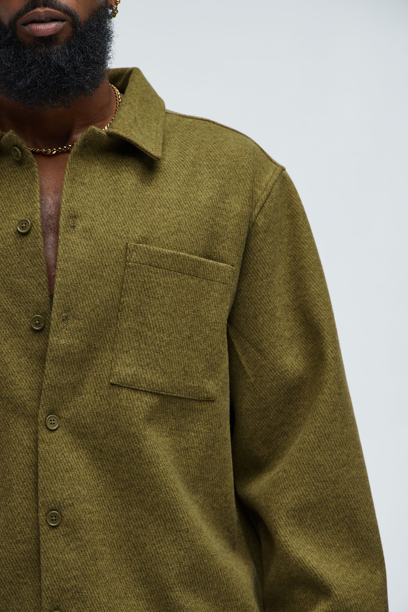 Available In Olive. Fold Down Collar Front Button Closure Chest Pockets Long Sleeve 96% Polyester 4% Rayon Imported |