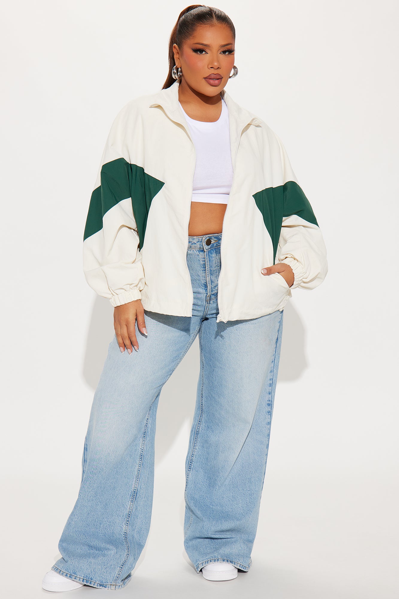 Available In Cream/combo. Windbreaker Jacket Mock Neck Front Zipper Stripe Detail Adjustable Toggler hem Pair With "Team Player Windbreaker Track Pant" Shell: 100% Nylon Lining: 100% Polyester Imported |