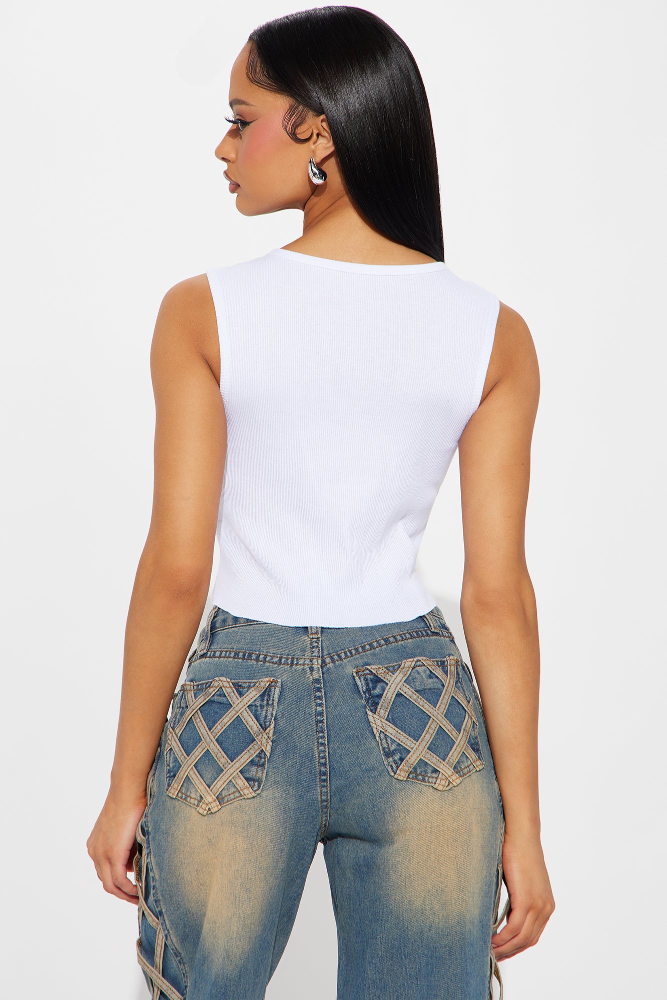 Available In White. Crew Neck Sleeveless Front Screen Cropped Stretch Disclaimer: Due To The Printing Process A Difference In Saturation May Occur. Each Garment Is Unique. 100% Cotton Imported |