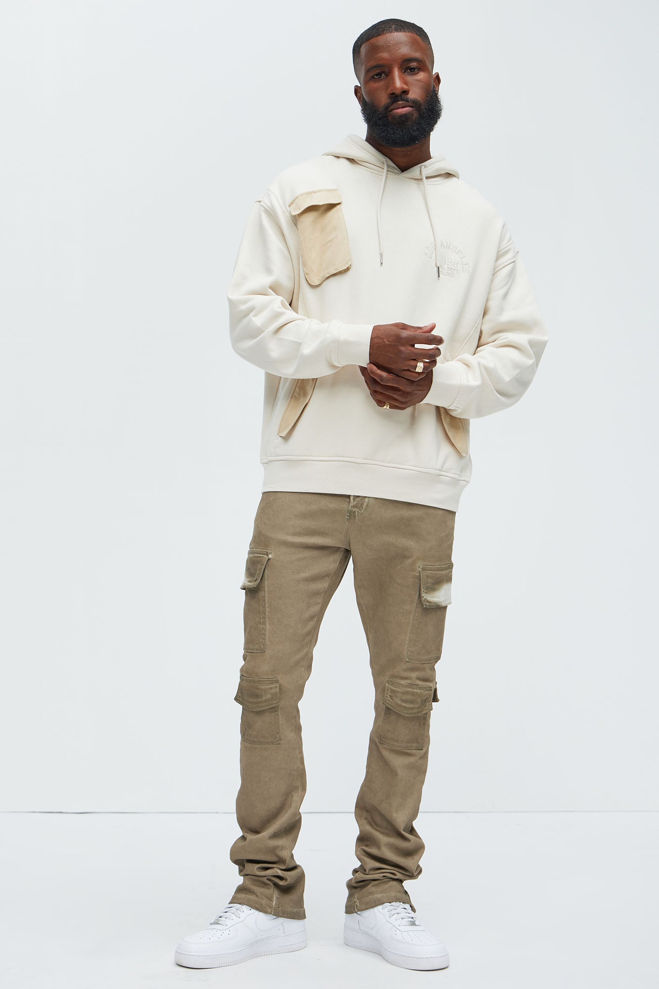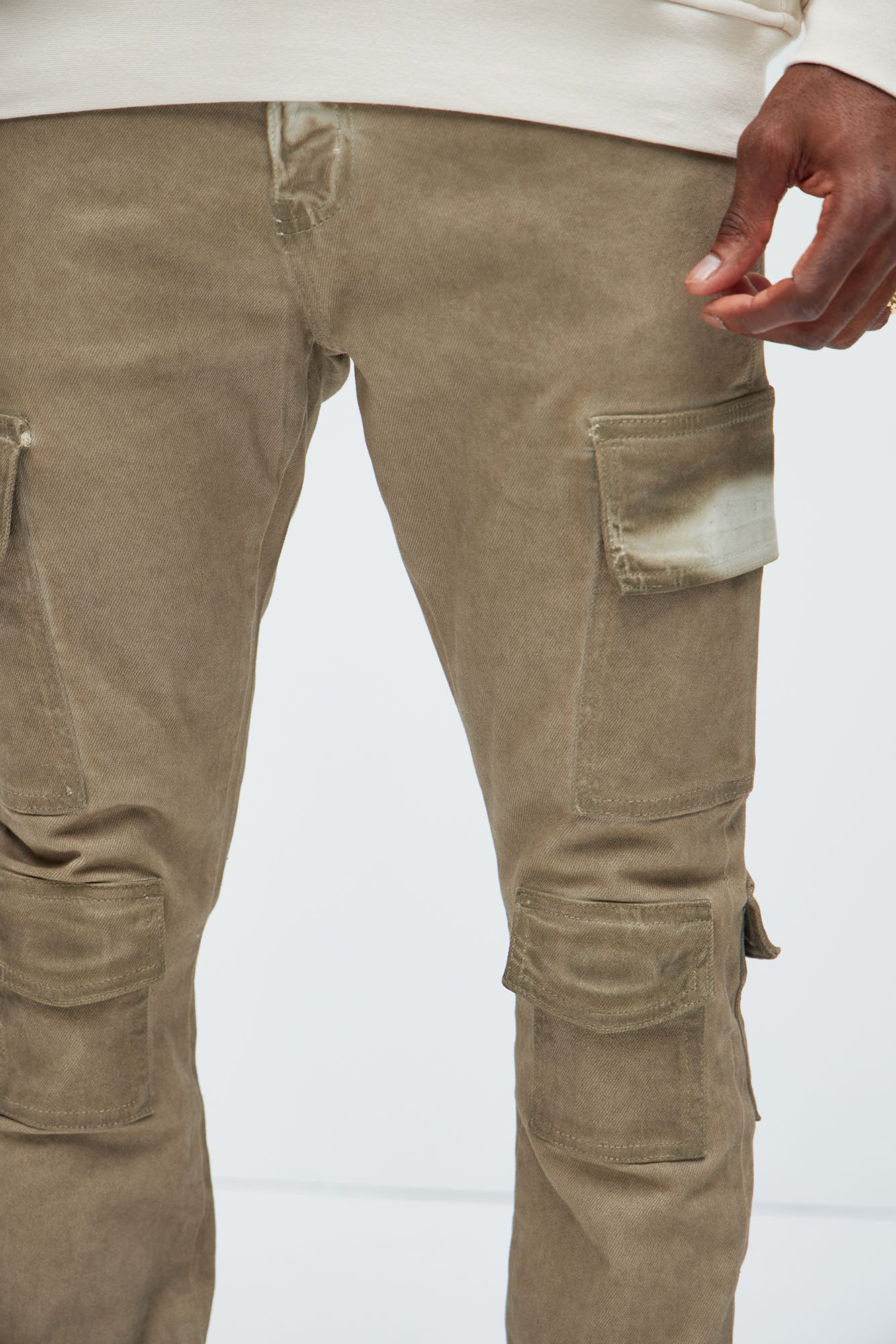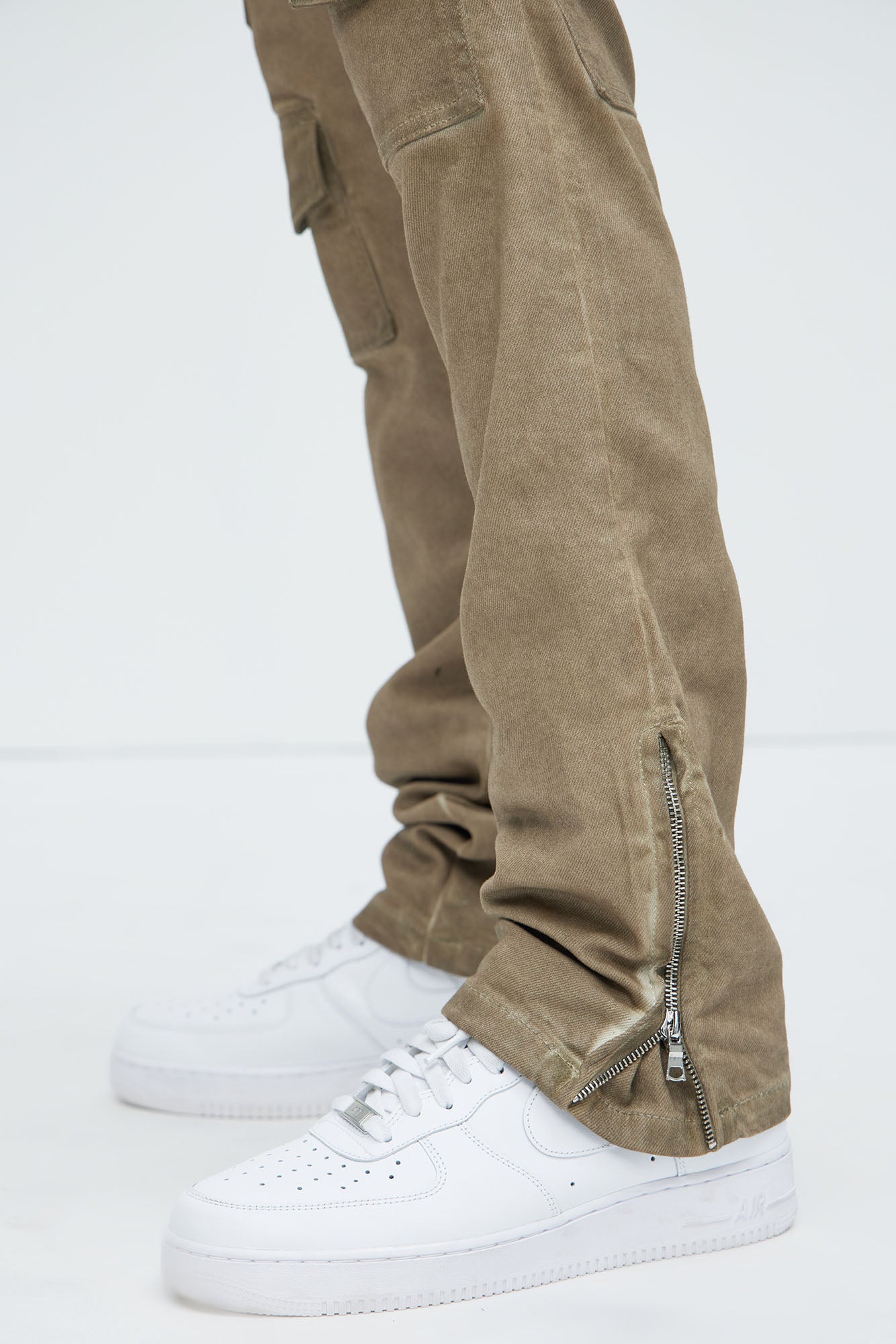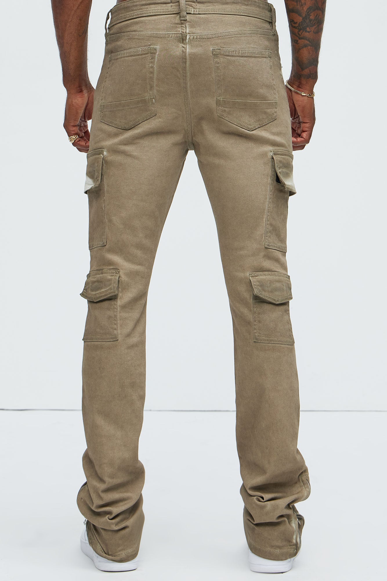 Available In Taupe. Stacked Skinny Flare Fit Stretch Denim 98% Cotton 2% Elastane Disclaimer: Due To The Wash Process Each Garment Is Unique. Zip Fly Button Closure 5 Pocket dETAIL Cargo Detail Zipper Detail At Hem Imported |