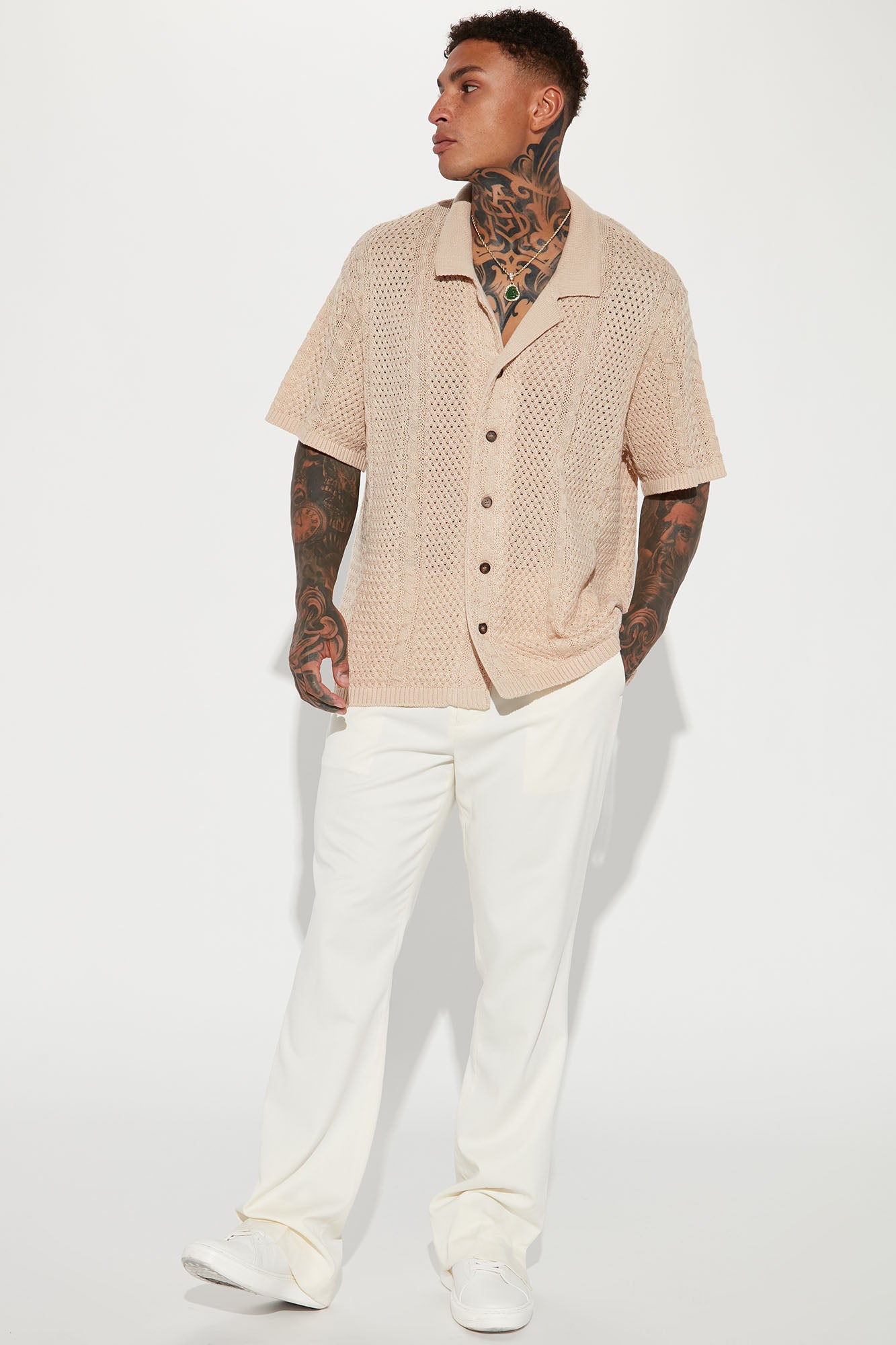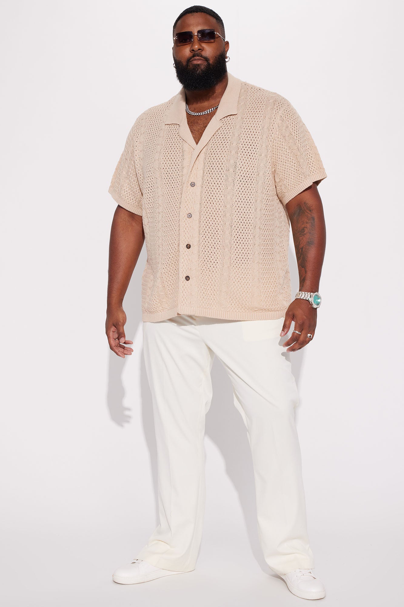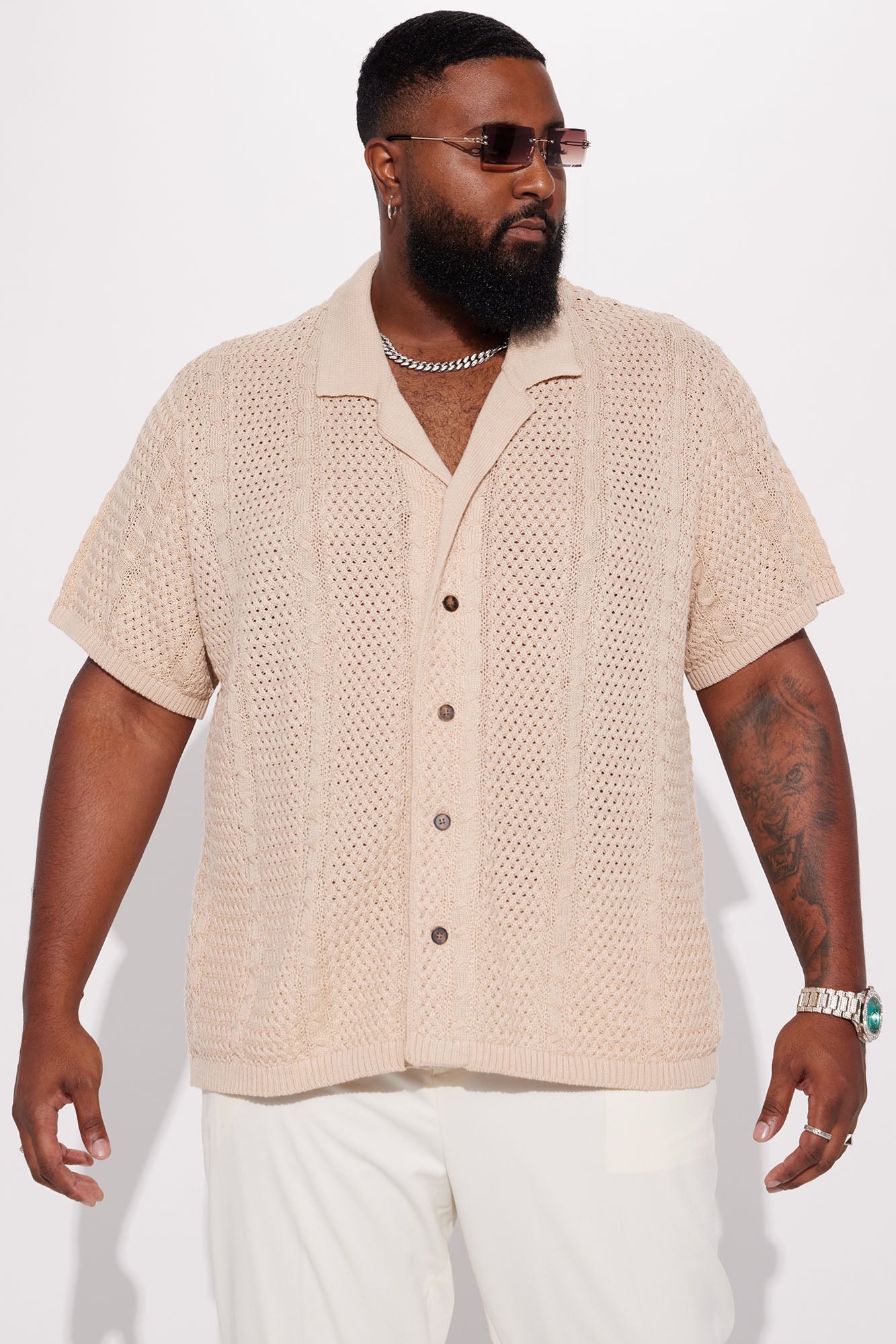 Model Height: 6'1 - Wearing Large Big & Tall: Height 6'5 - Wearing XXL Available In Oatmeal. Fold Down Collar Front Button Closure Disclaimer: Pattern Placement May Vary 85% Polyester 15% Cotton Imported |