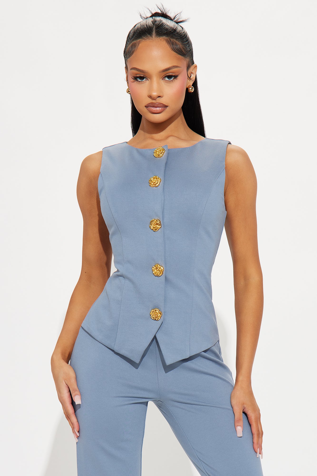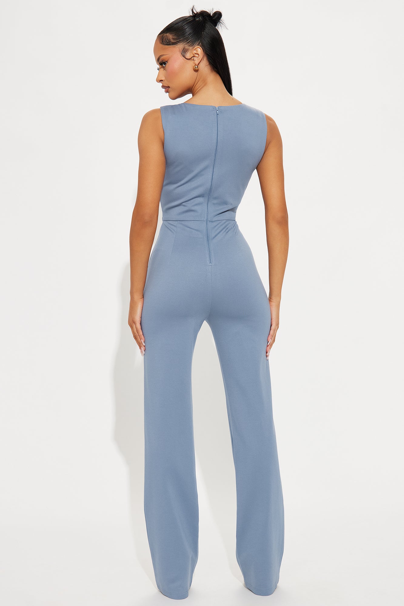 Available In Dusty Blue And Butter Yellow. Jumpsuit Sleeveless High Neck Button Front Back Zipper Stretch Inseam = 33" Self: 63% Rayon 32% Nylon 5% Spandex Lining: 63% Rayon 32% Nylon 5% Spandex Imported |
