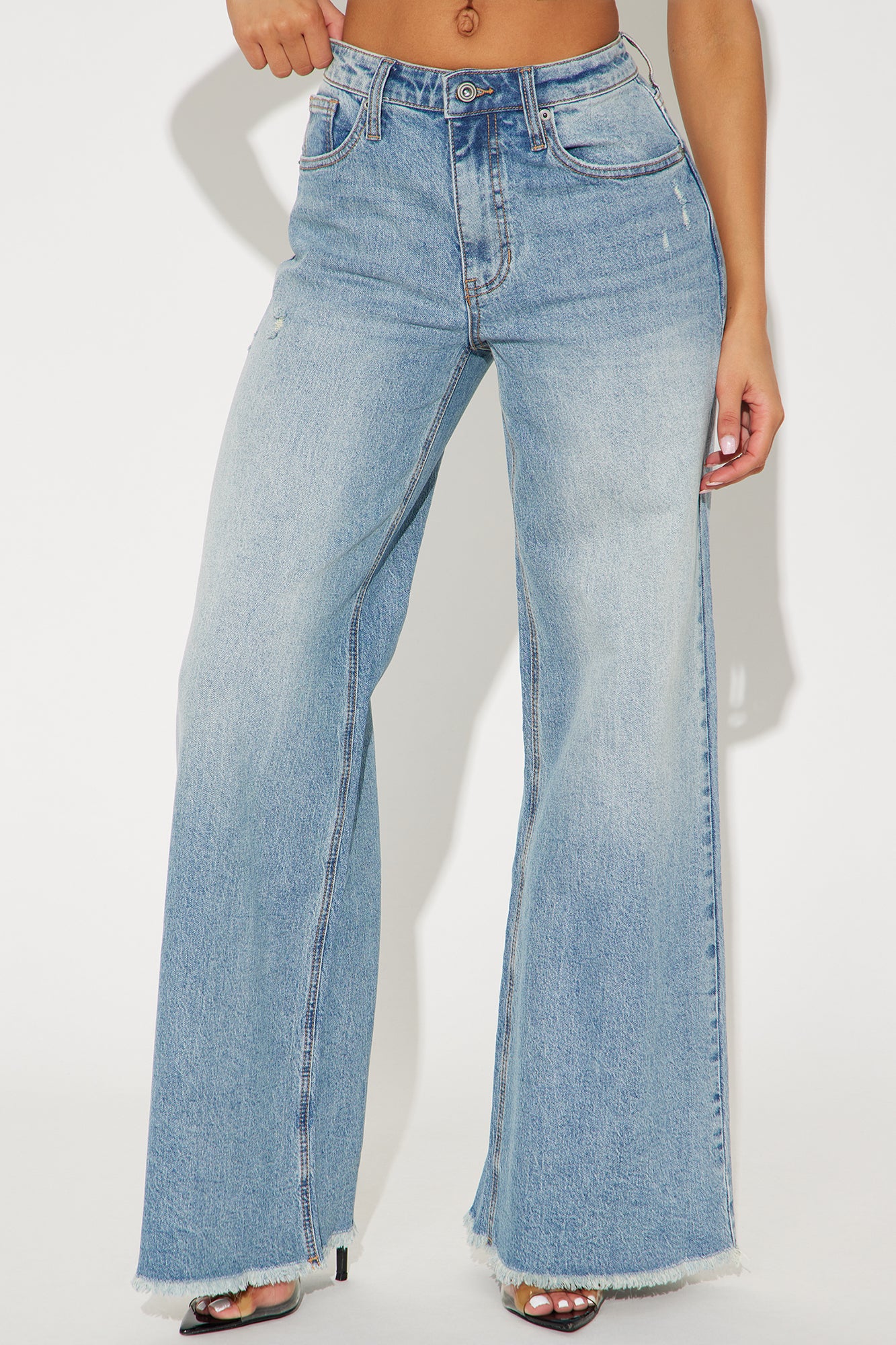 Available In Vintage Wash. Wide Leg Jean Belt Loops 5 Pocket Button Closure Fray Hem 32" Inseam 10.5" High Rise Low Stretch Disclaimer: Due To The Specialized Wash & Distressing Process, Each Garment Is Unique. 99% Cotton 1% Spandex Imported |