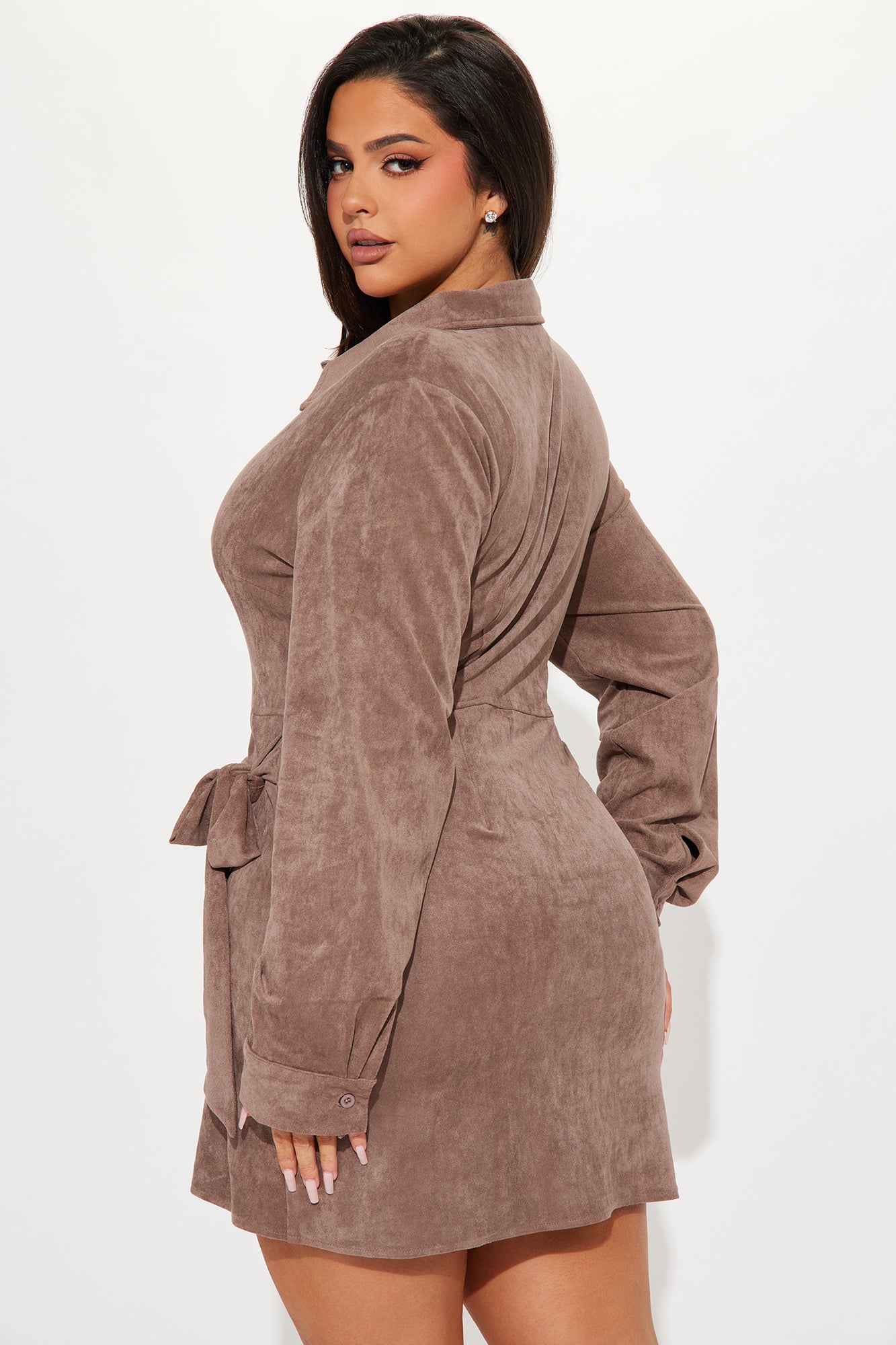 Faux Suede Mini Shirt Dress