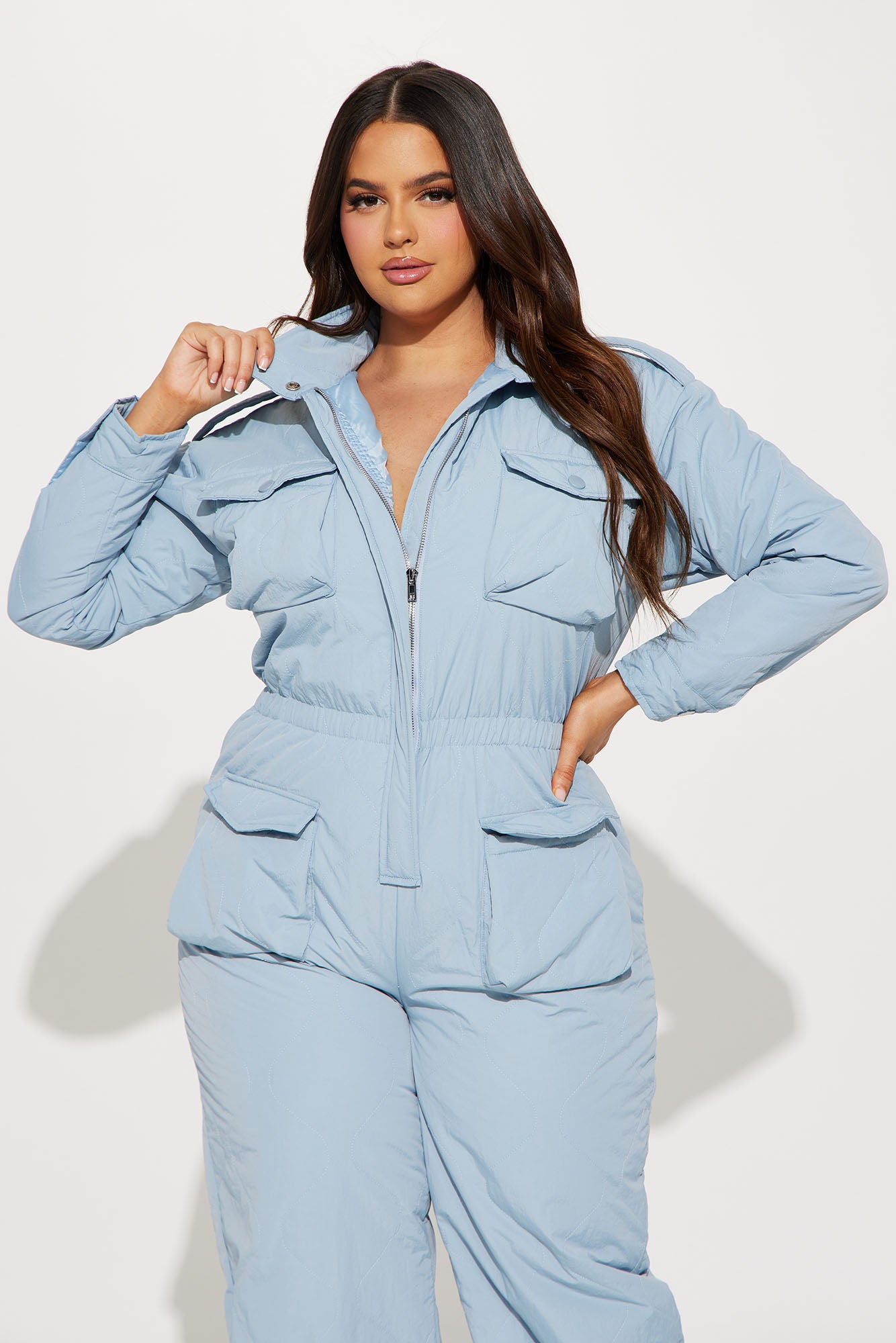Available In Slate Blue And Taupe. Jumpsuit Mock Neck Long Sleeve Front Zipper Elastic Waistband Jogger Non Stretch Water-Resistant; Not A Performance Snow Item Self: 100% Nylon Lining: 100% Polyester Imported |